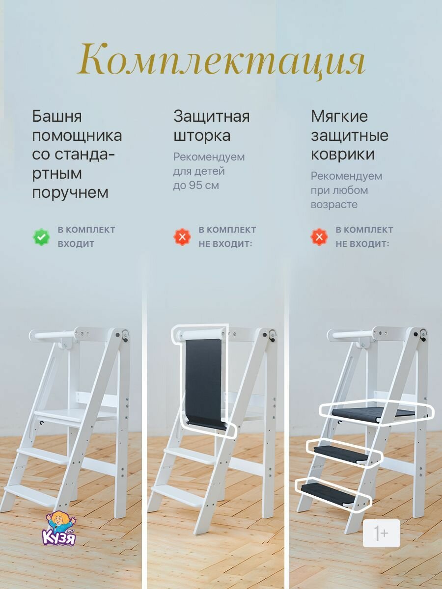 Башня помощника складная Монтессори, табурет-стремянка, с защитной шторкой и ковриками