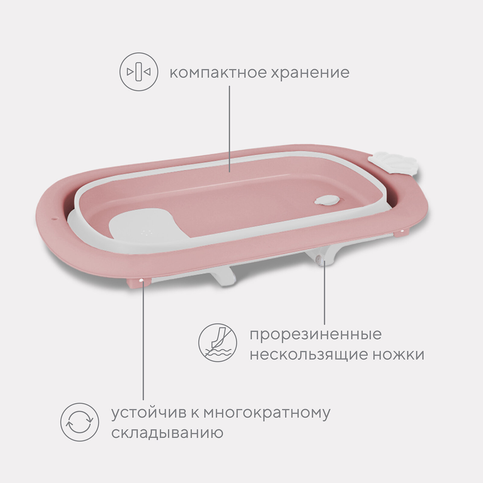 Ванна детская складная со сливом 83 см MOWbaby "Oasis" RBT004 Rose интересное: