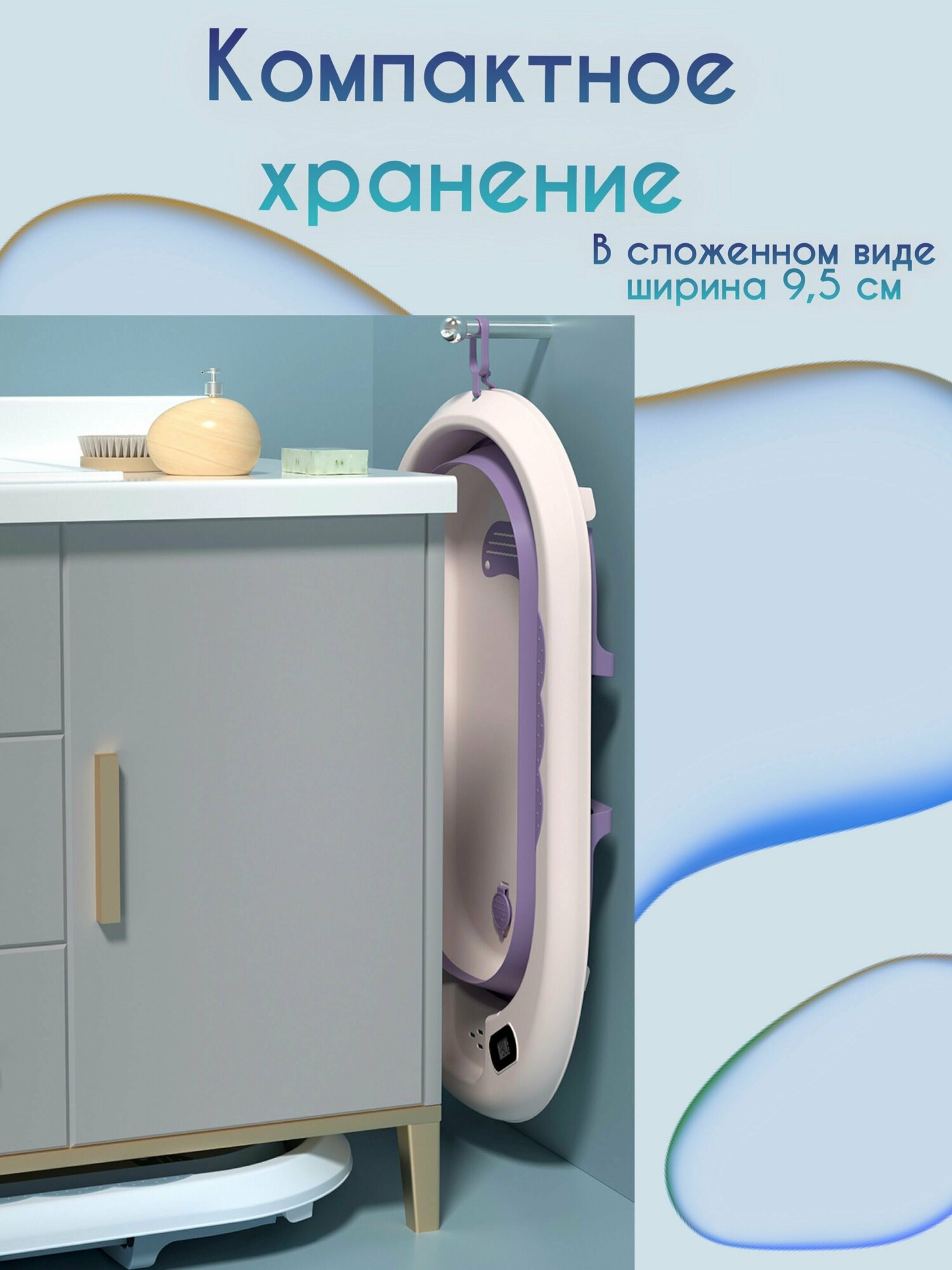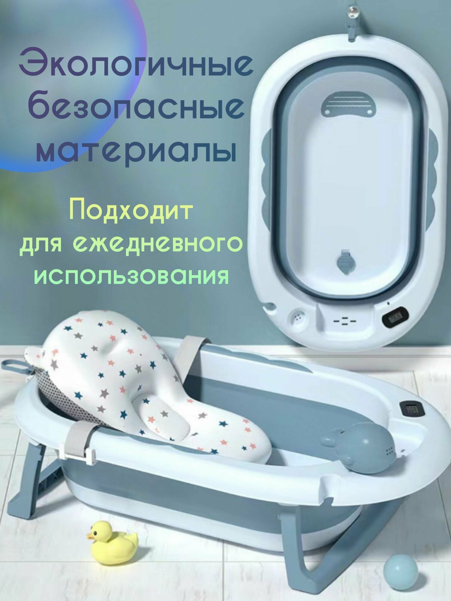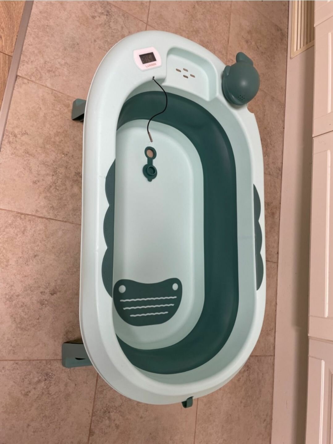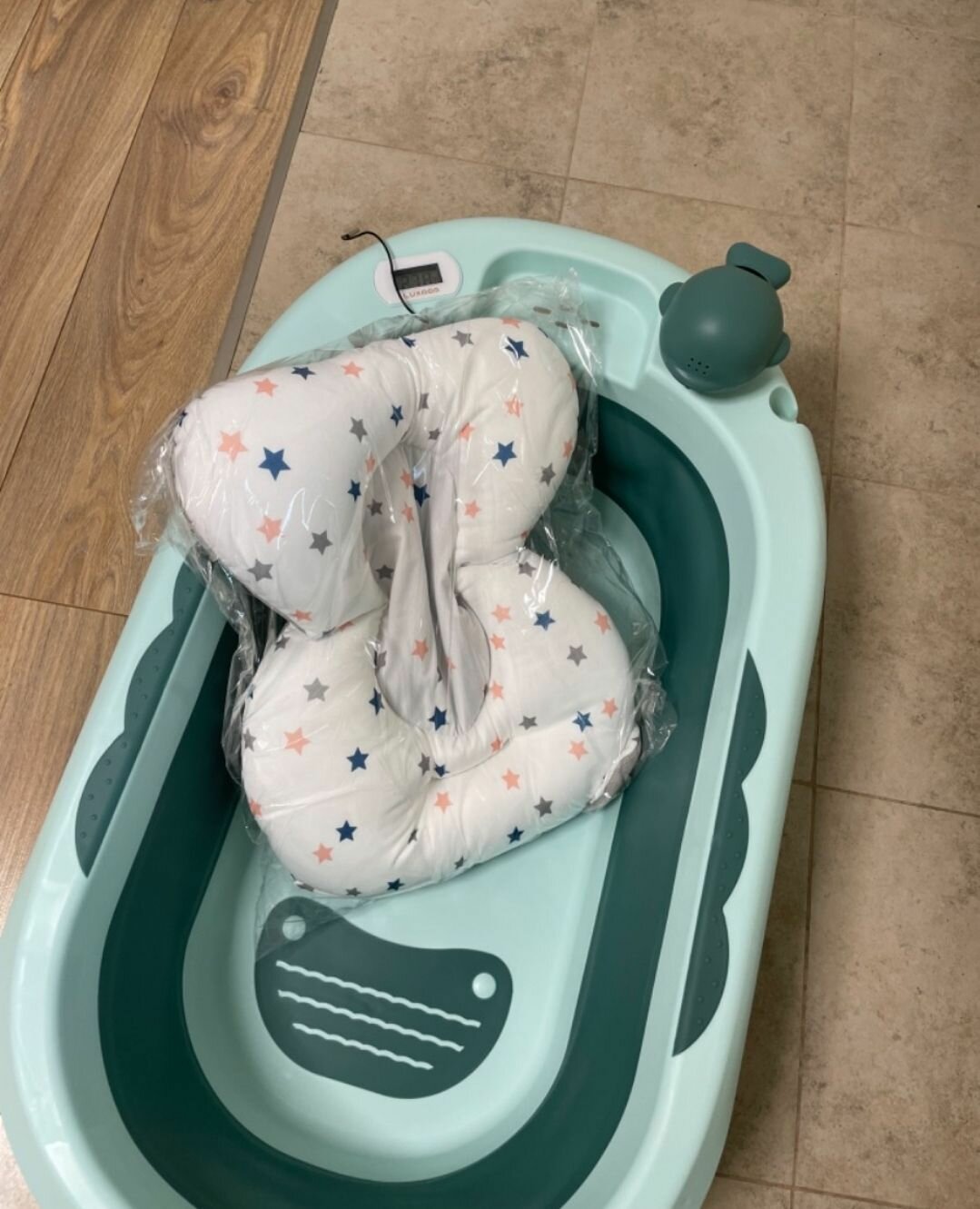 Ванночка для купания новорожденных детская складная с термометром Luxmom интересное: