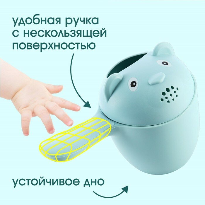 Ковш пластиковый для купания и мытья головы, детский банный ковшик «Мишка», 500 мл., с леечкой, цвет голубой интересное: