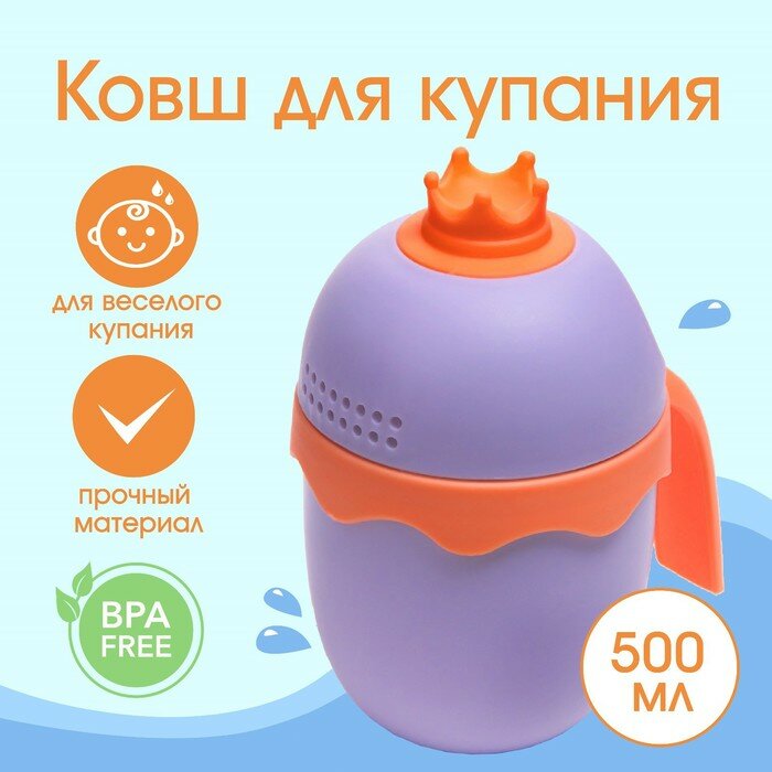 Ковш пластиковый для купания и мытья головы, детский банный ковшик «Корона», 400 мл., с леечкой, цвет фиолетовый интересное: