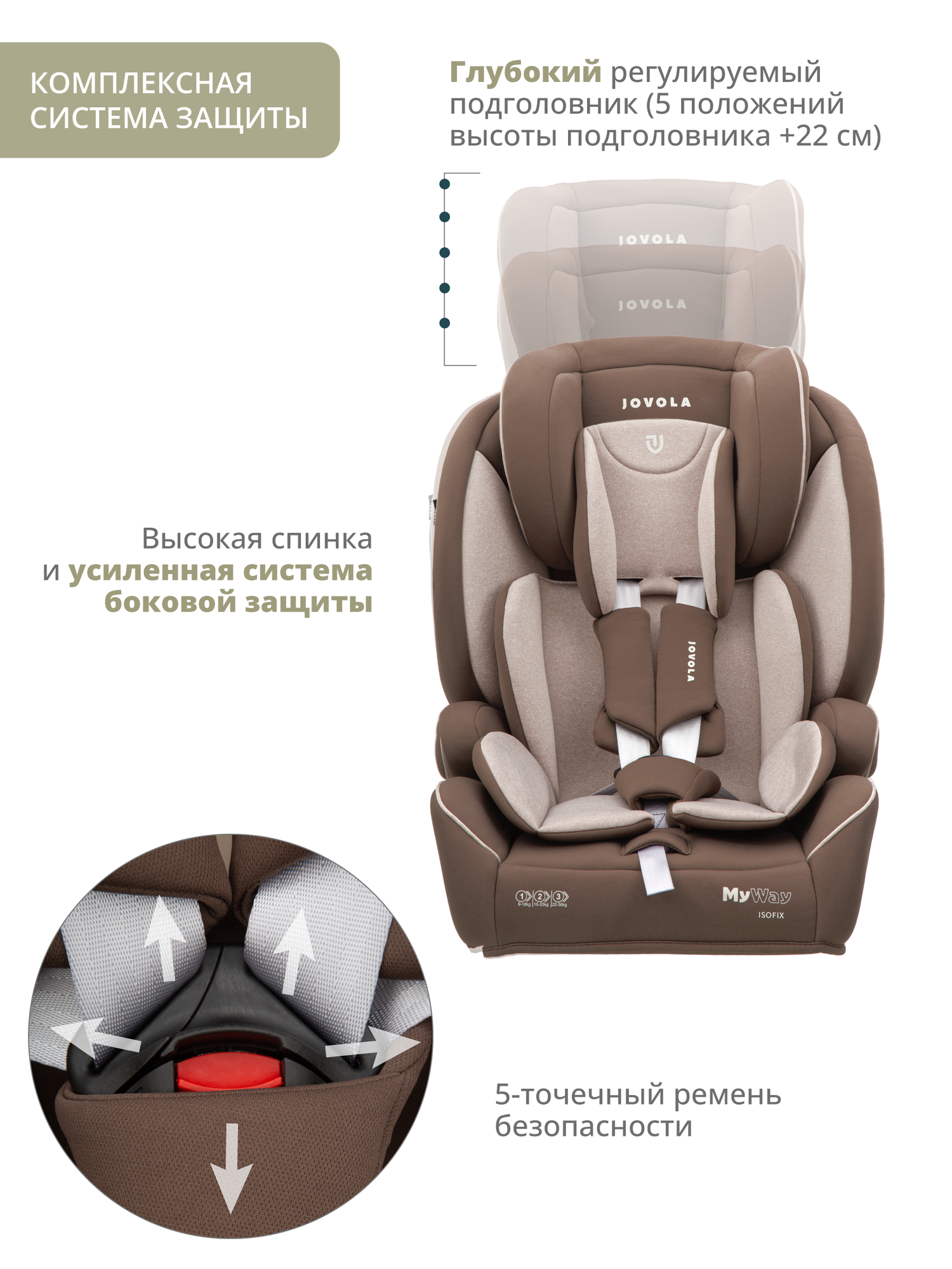 Автокресло бустер Jovola MyWay ISOFIX, группы 0/1/2/3 (до 36 кг), 3 (22-36 кг), до 12 лет, бежевый-коричневый