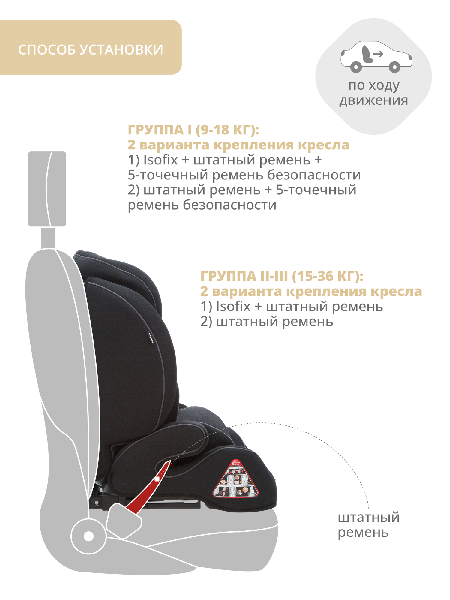 | Крепление | Isofix / автомобильные ремни |