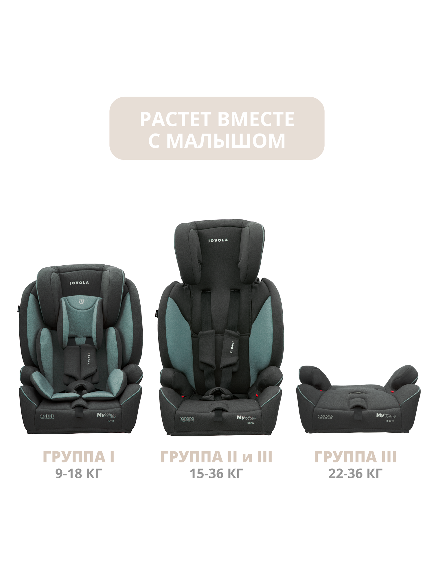 Купить Автокресло-трансформер JOVOLA MyWay ISOFIX, бустер, группа 1,2,3, 9-36 кг, серый-зеленый