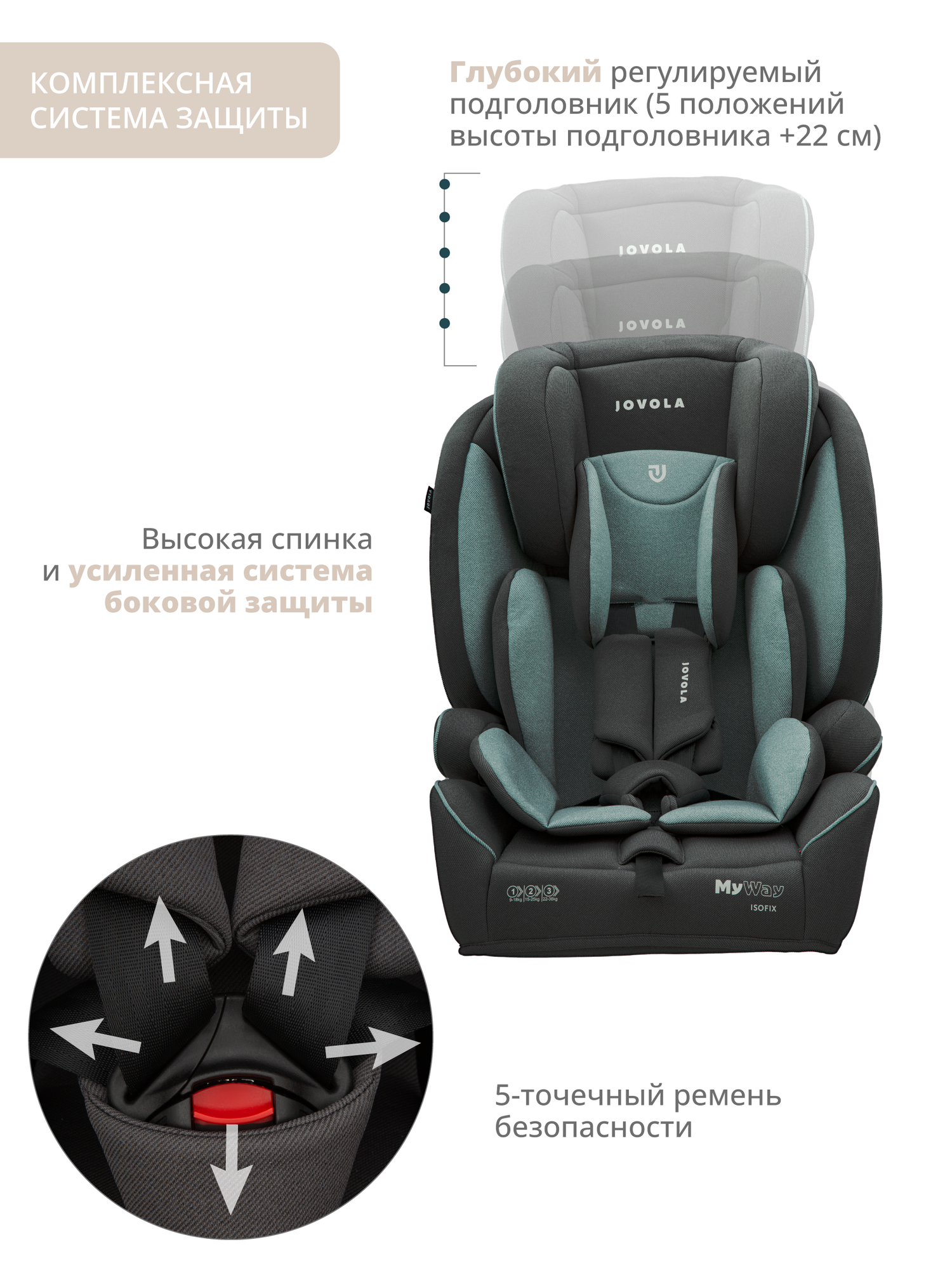 Автокресло бустер Jovola MyWay ISOFIX, группы 0/1/2/3 (до 36 кг), 3 (22-36 кг), до 12 лет, серый-зеленый