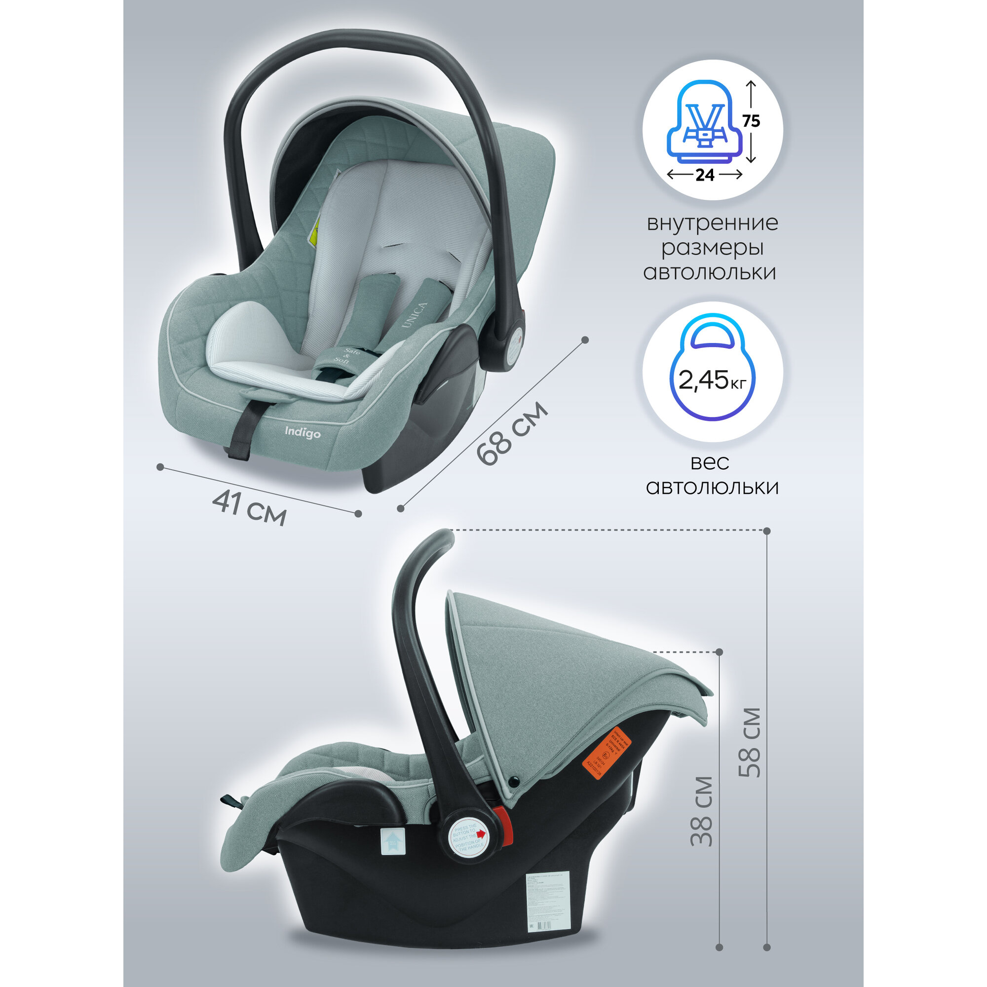 Автокресло Indigo UNICA, группа 0+, 0-13 кг, зеленый интересное: