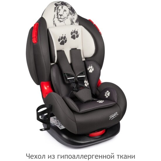 Купить Автокресло Siger Кокон ISOFIX серо-бежевый лев lux (группа I/II 0-25 кг 0-7 лет)