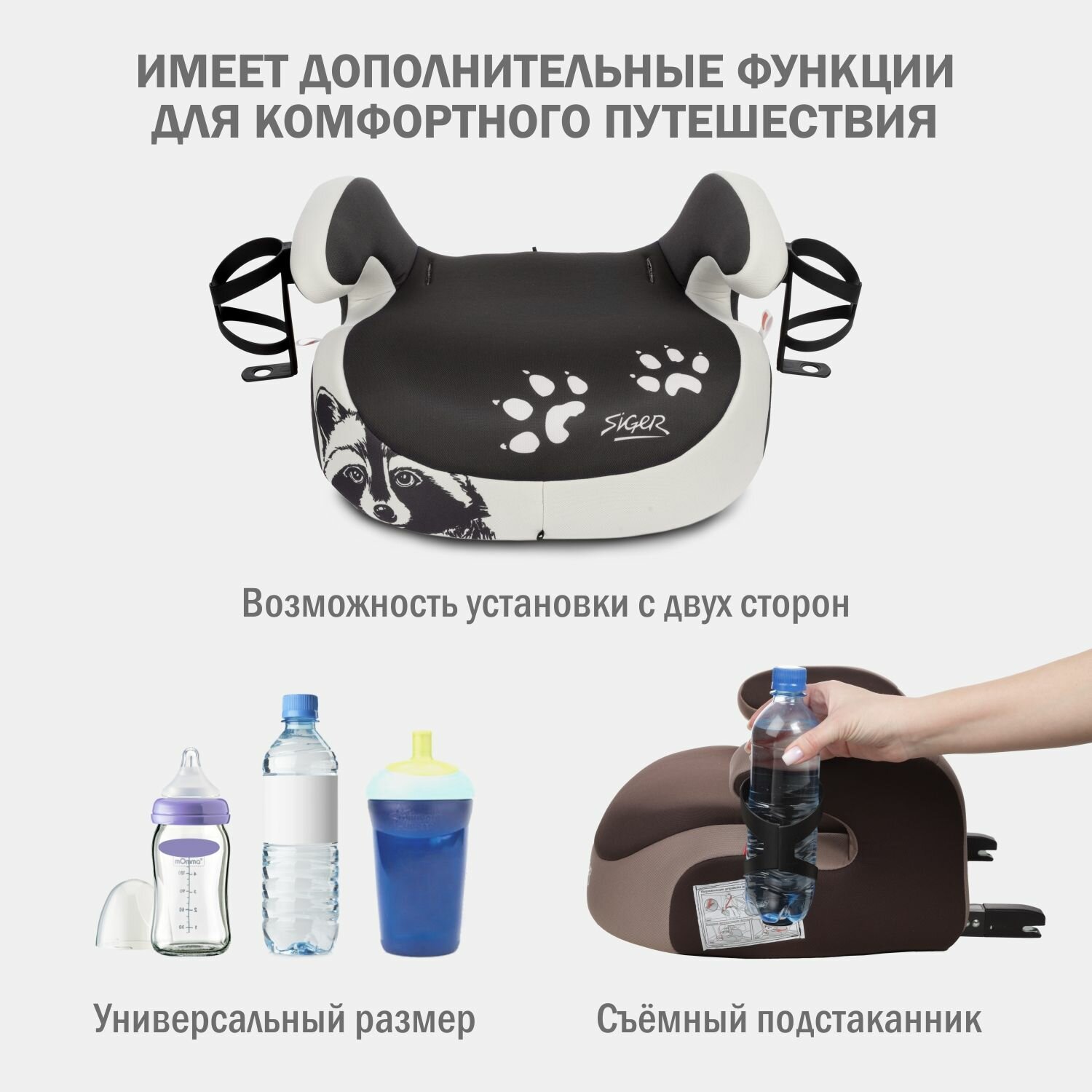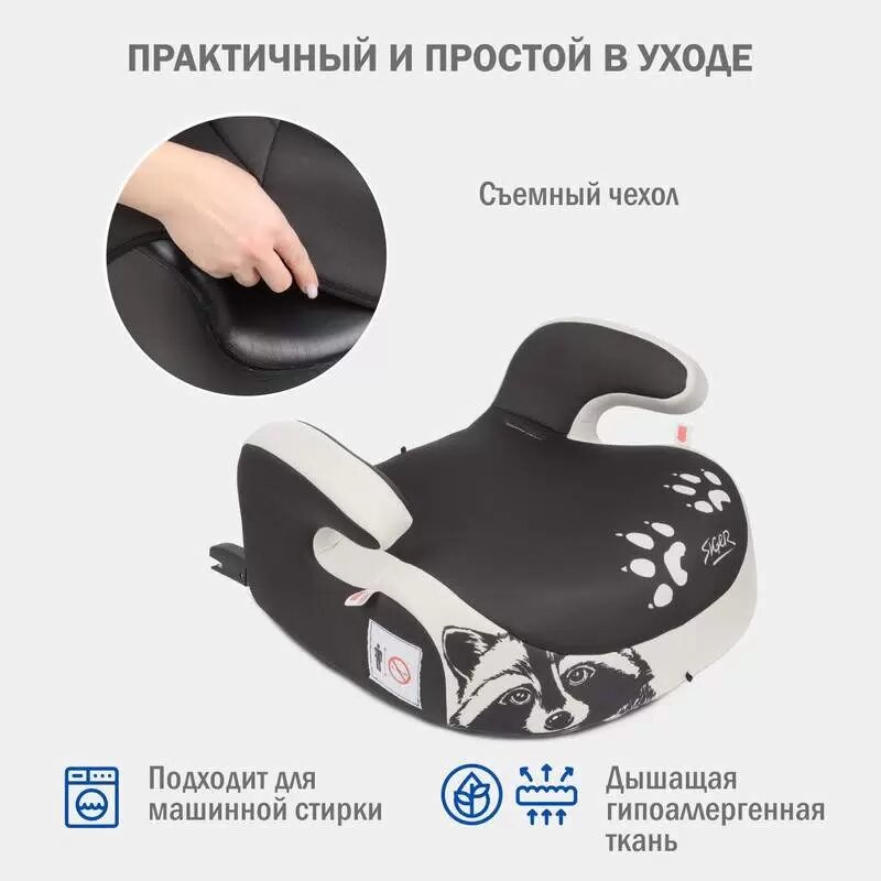СохранитьБустер автомобильный Siger Booster Fix Lux от 22 до 36 кг, енот серый, бежевый интересное: