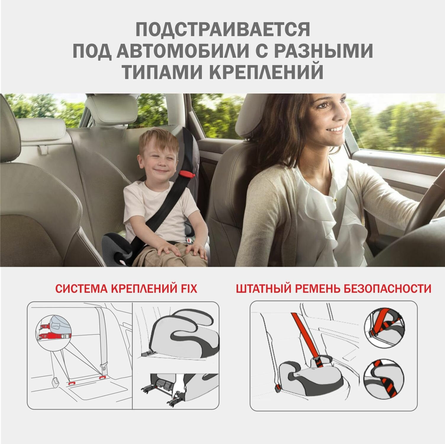 Удерживающее устройство для детей SIGER "Бустер FIX" красный, гр. III, 22-36 кг, 6-12 лет