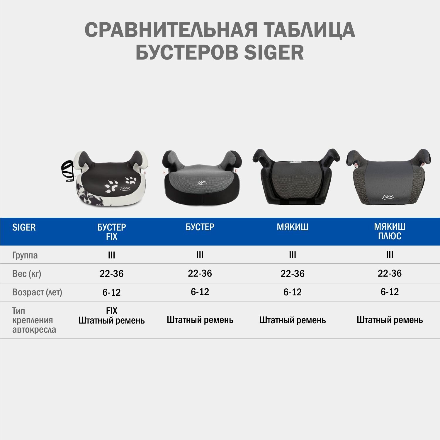 Бустер SIGER бустер FIX (серый) 6-12лет, 22-36кг