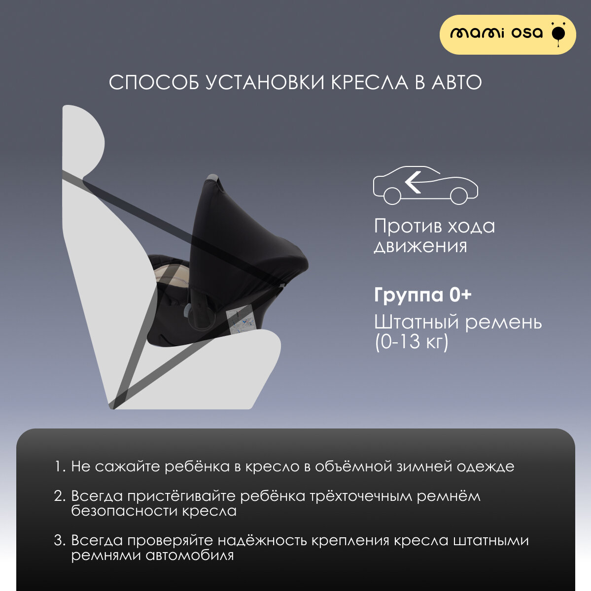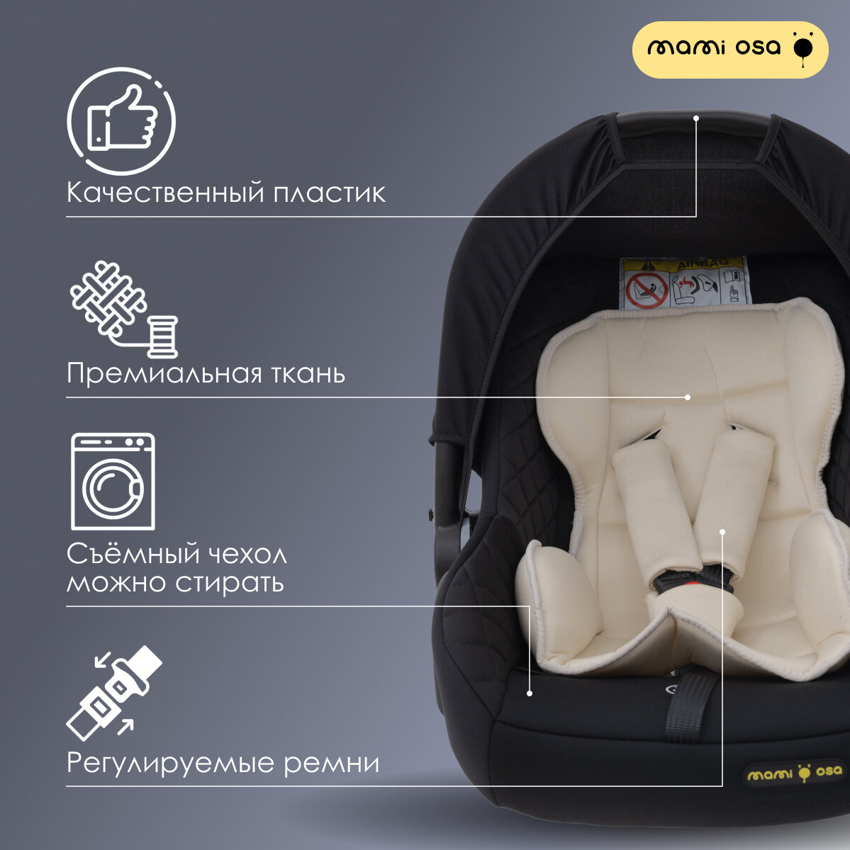 Автокресло / автолюлька MamiOsa Alicante черный / светло бежевый, от 0 до 13 кг, гр. 0+ интересное: