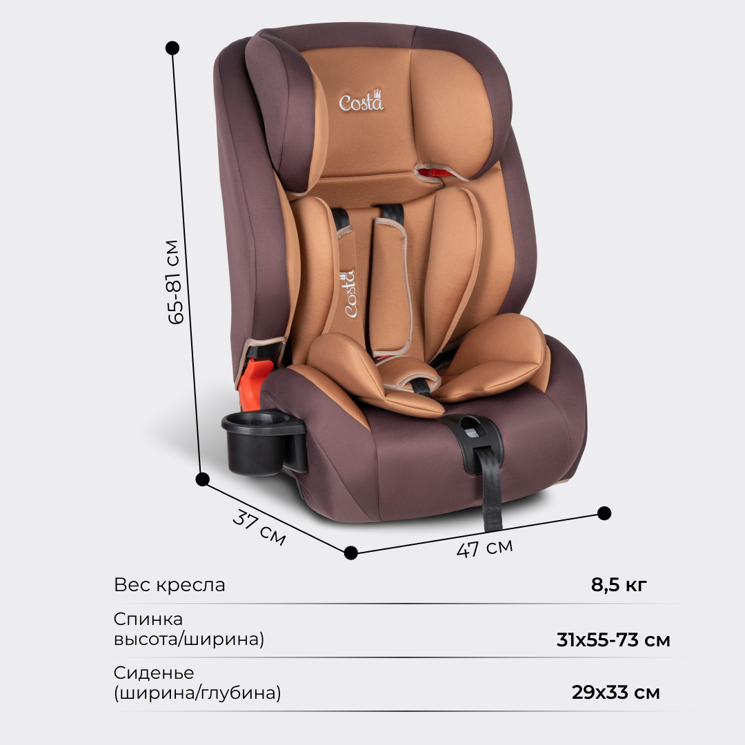 Автокресло детское Costa HD-02, крепление ISOFIX, группа 1/2/3, от 9 месяцев до 12 лет, от 9 до 36 кг, цвет кофейный интересное: