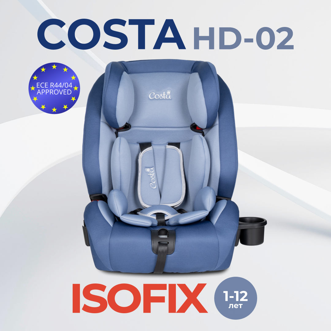Купить Автокресло детское Costa HD-02, крепление ISOFIX, группа 1/2/3, от 9 месяцев до 12 лет, от 9 до 36 кг, цвет голубой
