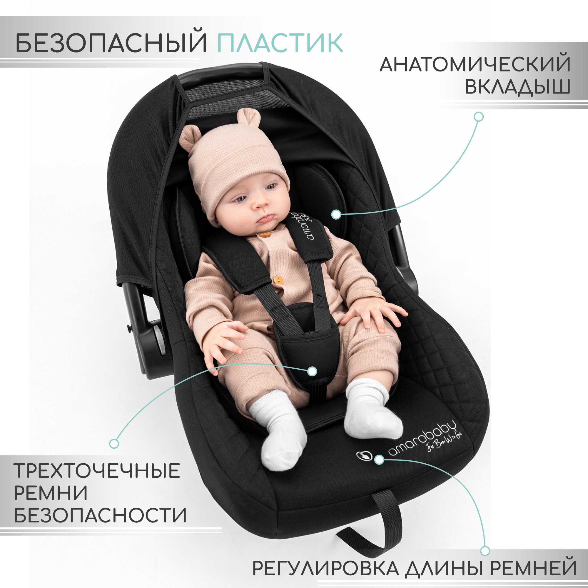 Автокресло детское AMAROBABY Baby comfort, группа 0+, (чёрный)