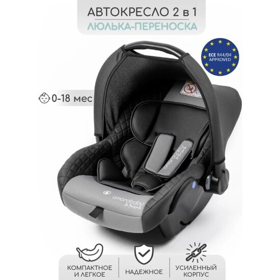Автокресло детское AMAROBABY Baby comfort, группа 0+, (серый/чёрный)