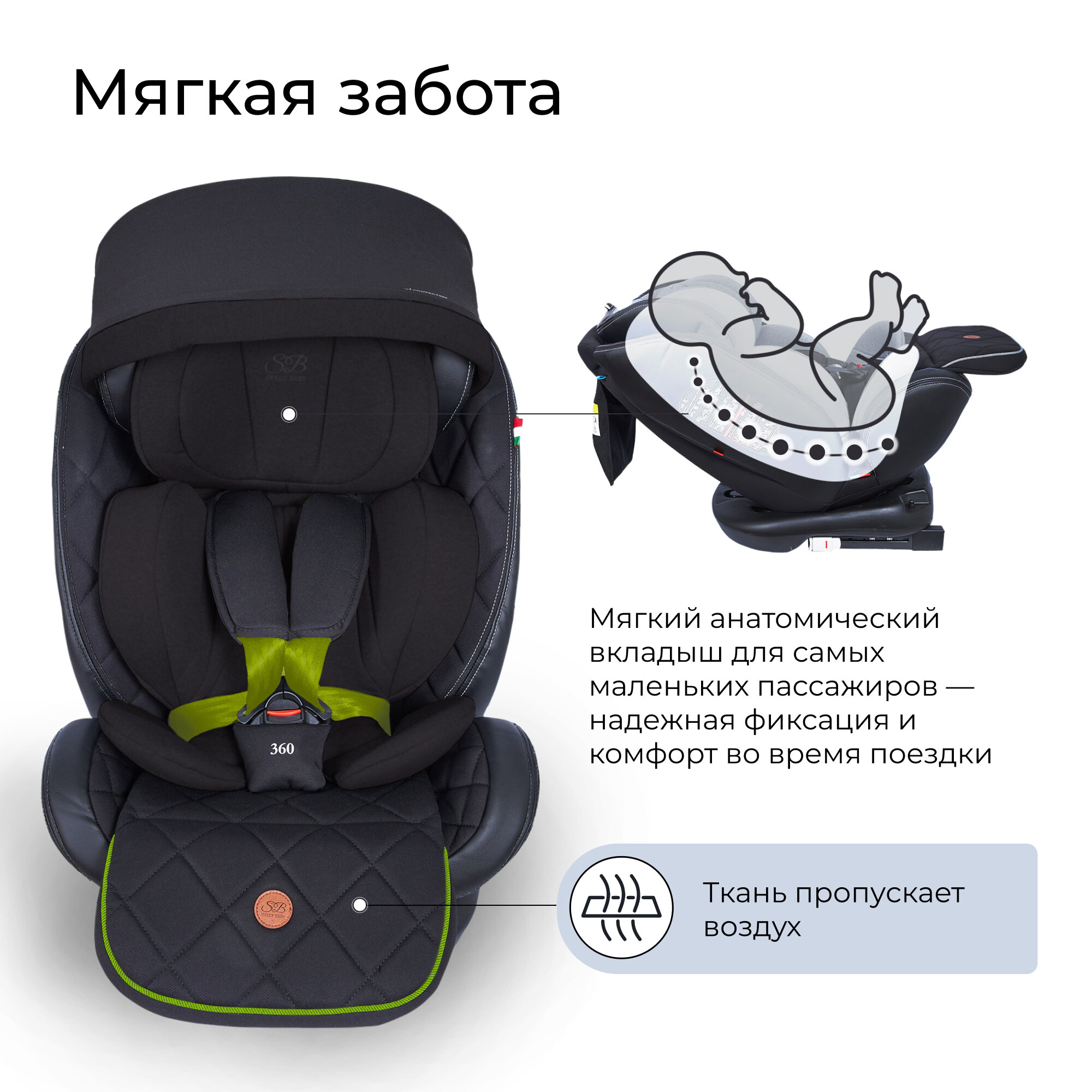 Автокресло Sweet Baby Suburban 360 Isofix Black/Green интересное: