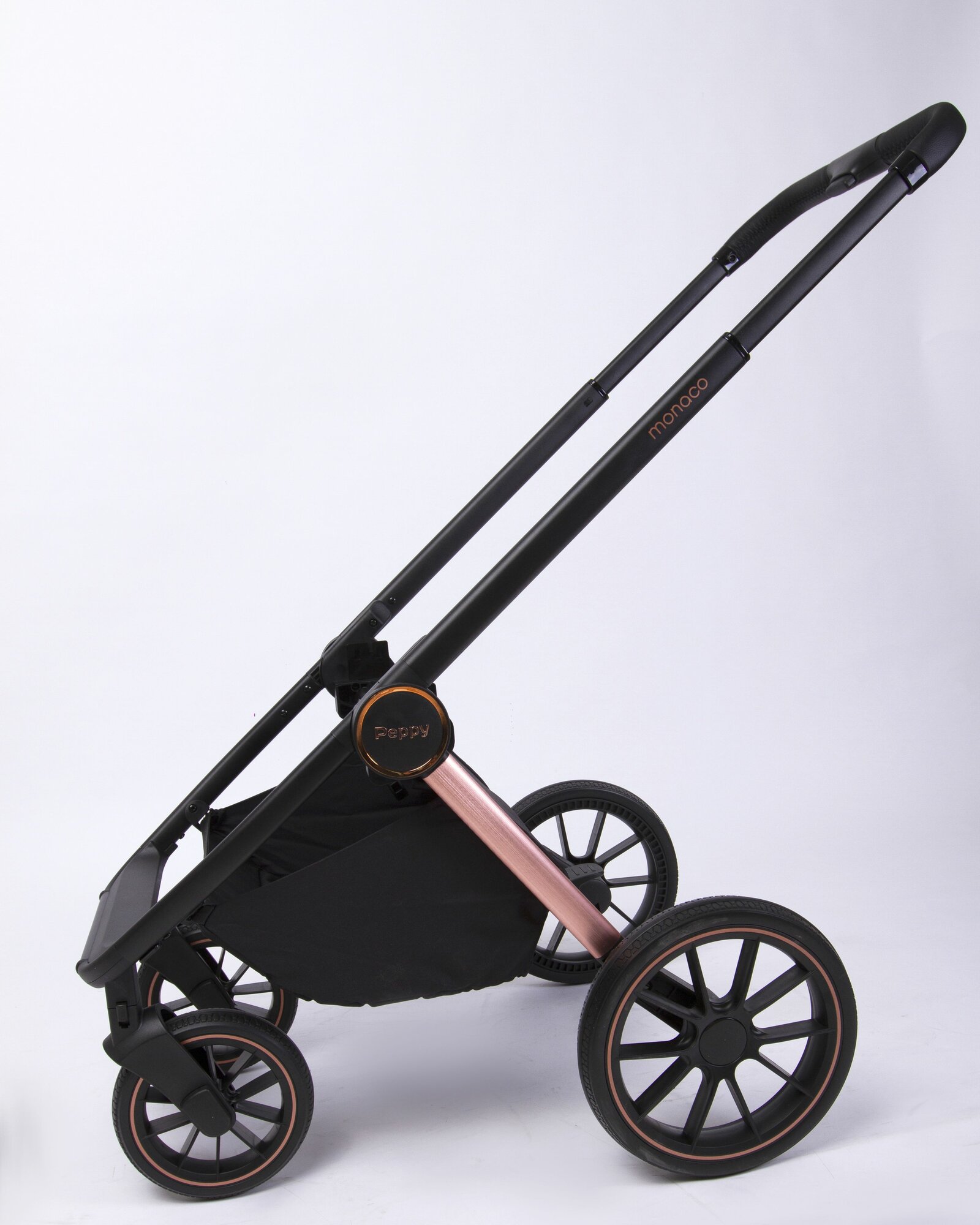 Купить Коляска детская Peppy Monaco 2 в 1 GP Rose Black (черный), рама черн-золотая, шлифованный алюминий