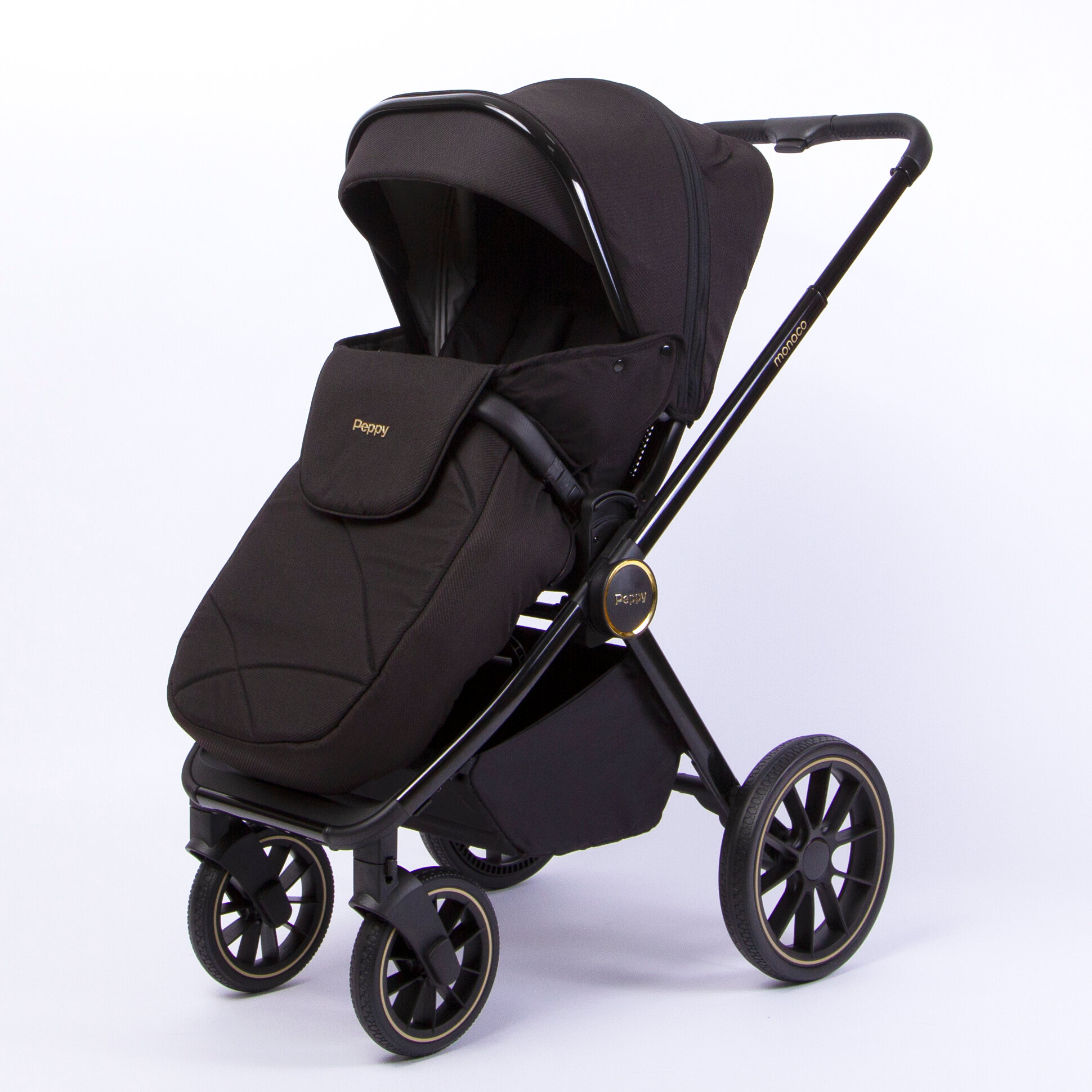 Коляска детская Peppy Monaco 2 в 1 Royal black (черный), рама черный глянец