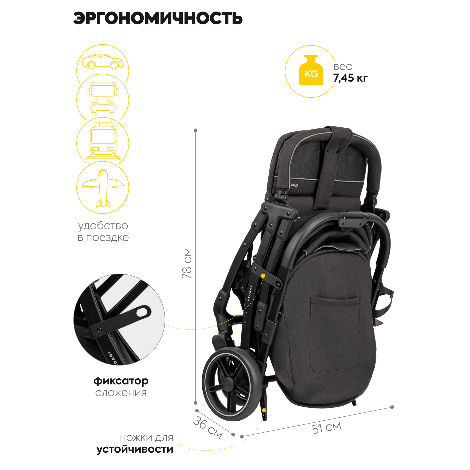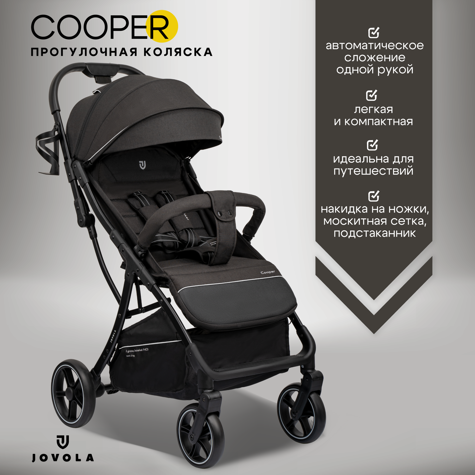 СохранитьКоляска прогулочная детская Jovola Cooper, легкая, для путешествий, автоматическое складывание, черный интересное: