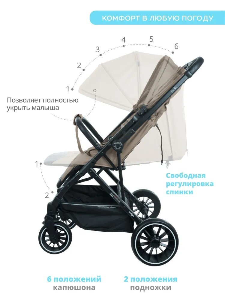 Прогулочная коляска Indigo Delta, бежевый интересное: