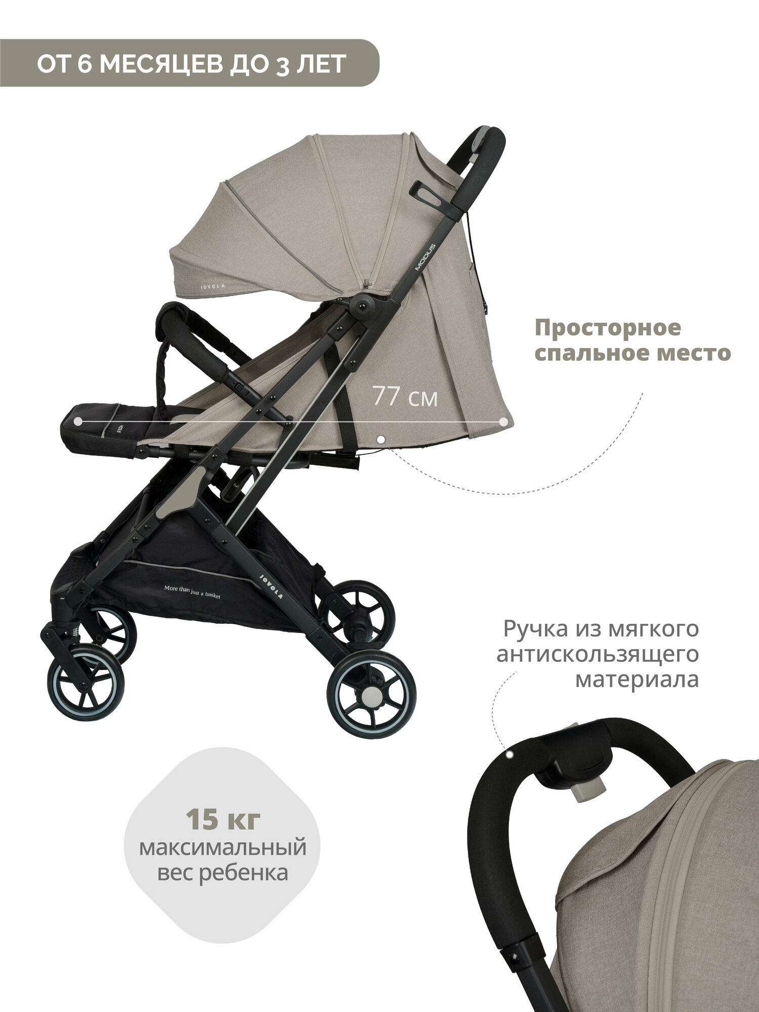 СохранитьКоляска прогулочная Jovola Modus с ручкой для транспортировки, бежевый интересное: