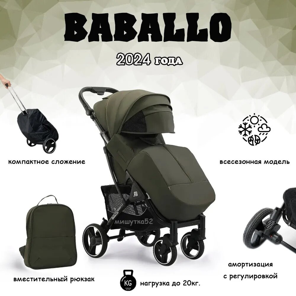 Коляска Babalo Future 2024 армейский / черная рама интересное: