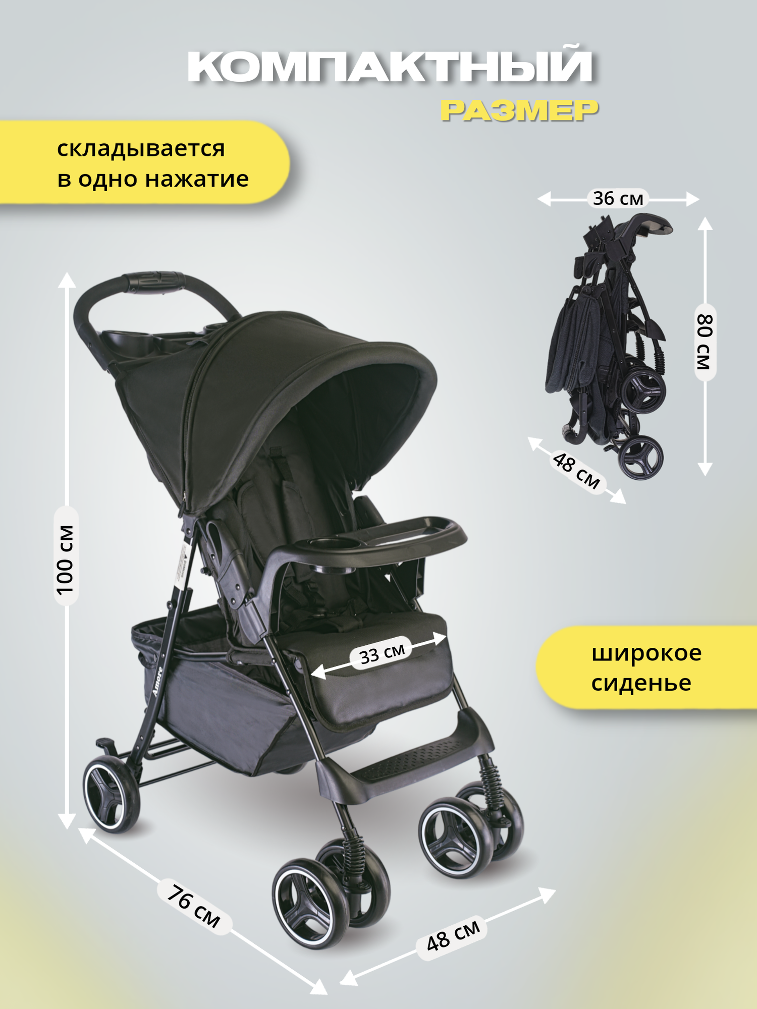 "LaKids Amore" - прогулочная коляска черный цвета интересное: