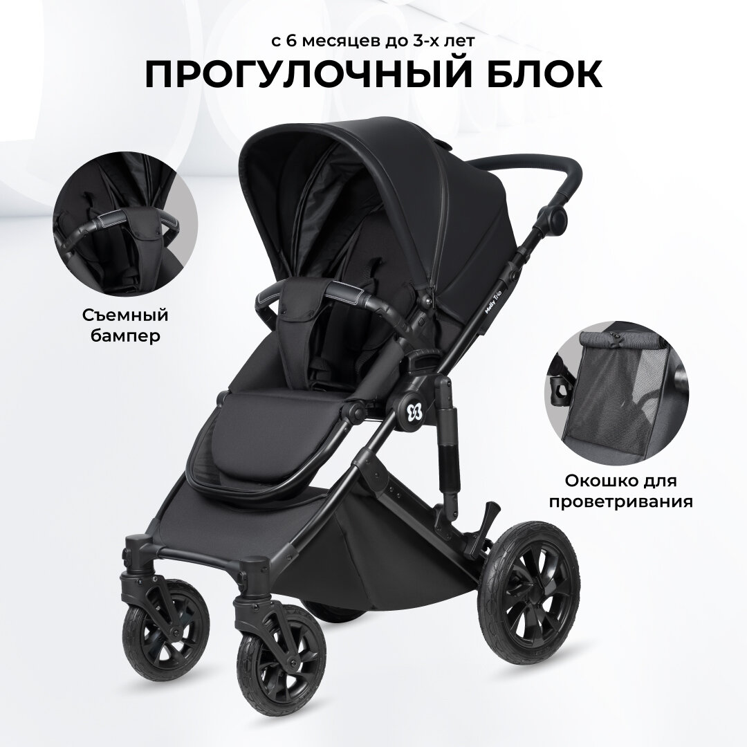Коляска для новорожденных 3 в 1 Farfello Molly Trio, экокожа черный интересное: