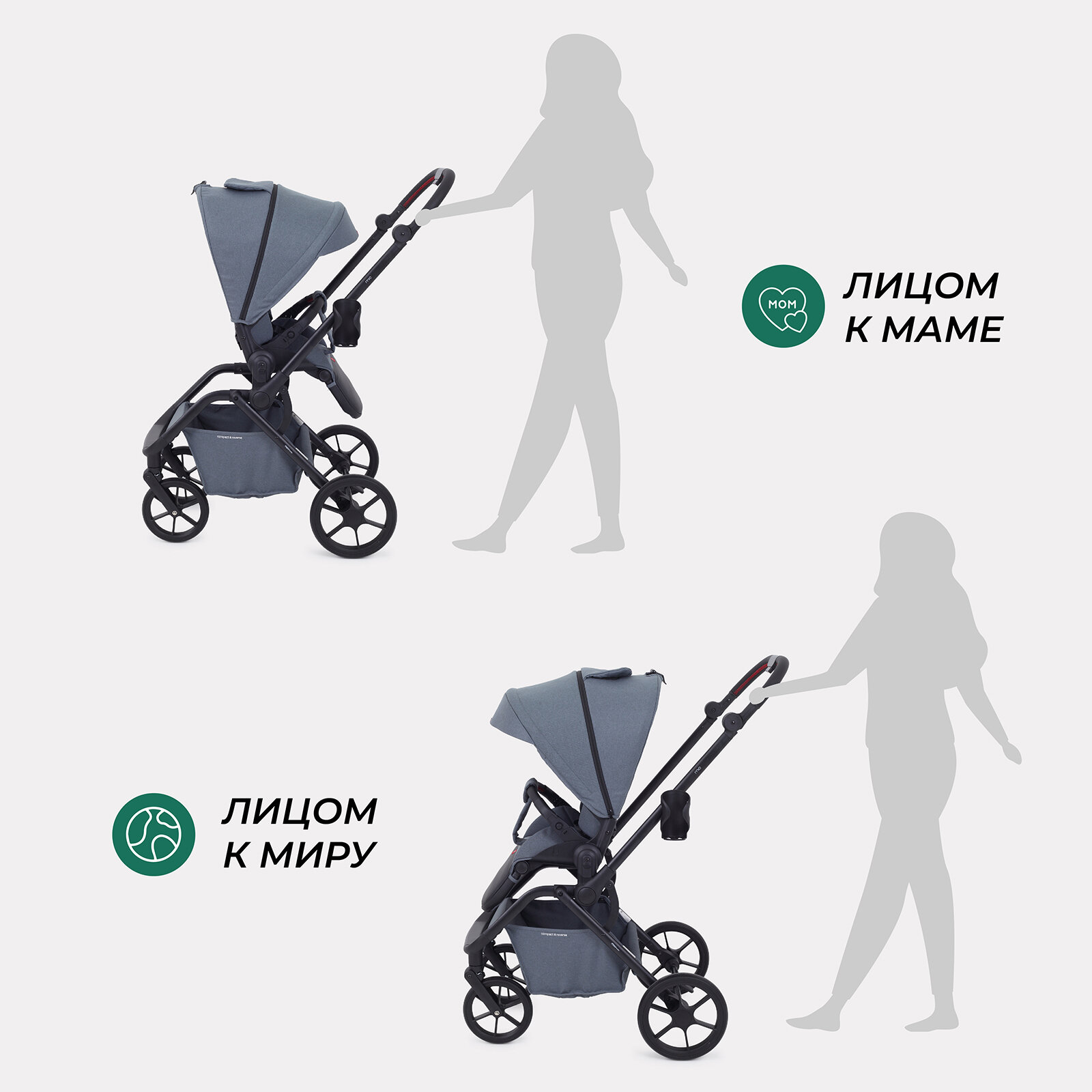 | Особенности шасси | корзина для покупок / перестановка блока лицом/спиной / регулировка высоты ручки |