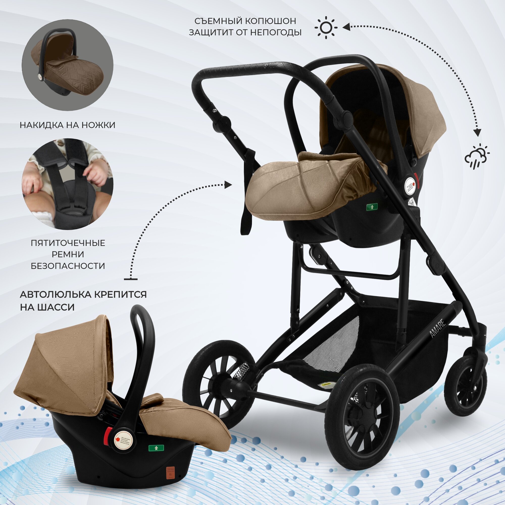 Коляска-трансформер 3в1 Sweet Baby Amare Beige