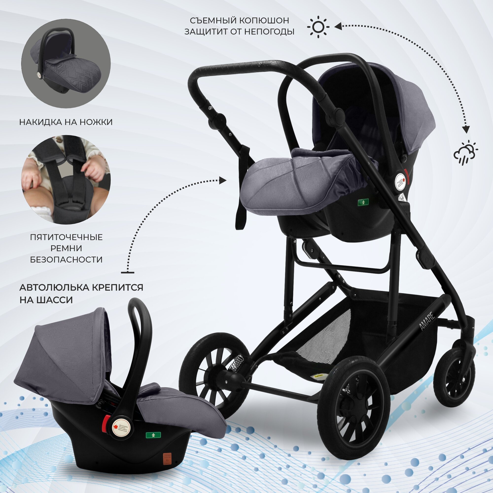 Коляска-трансформер 3в1 Sweet Baby Amare Grey