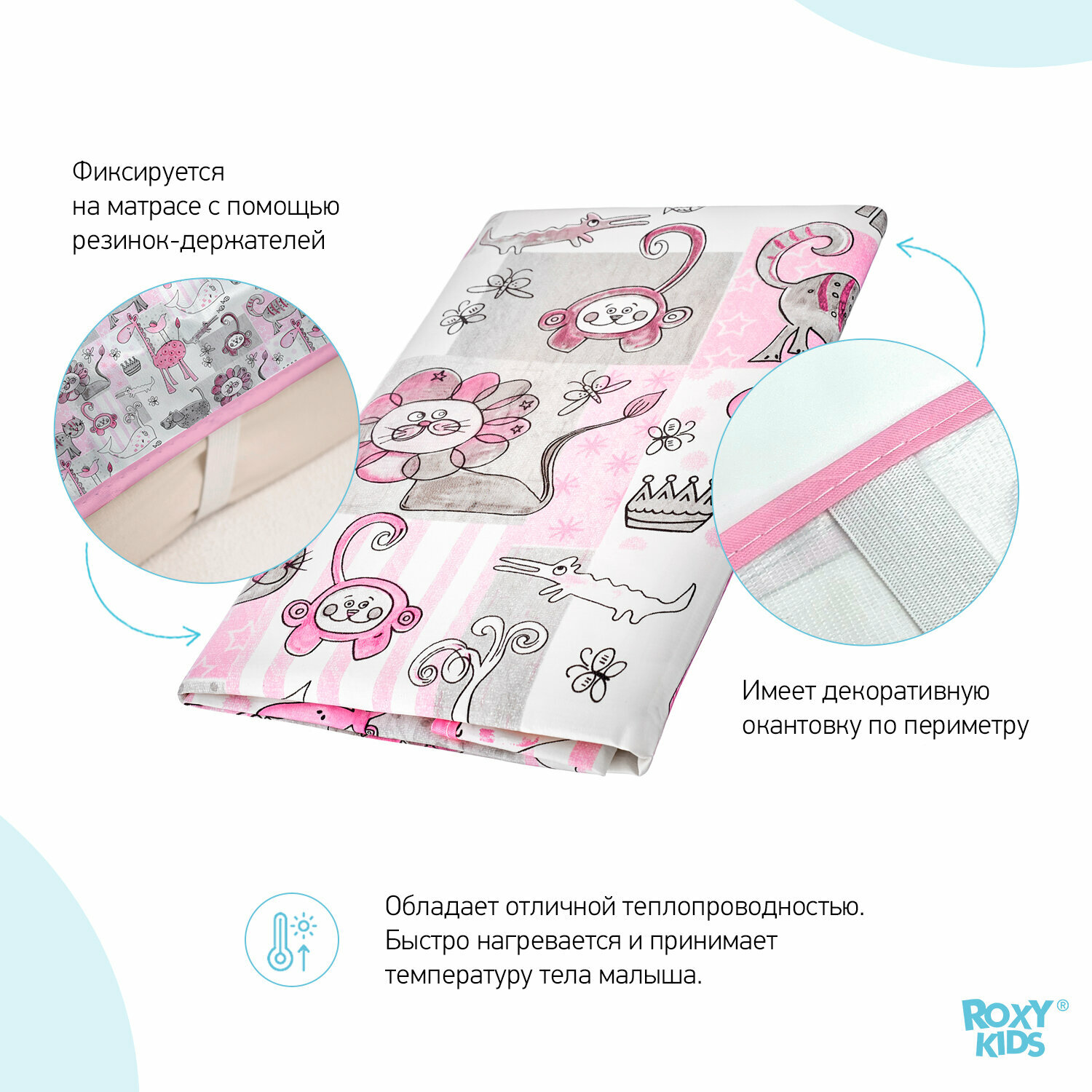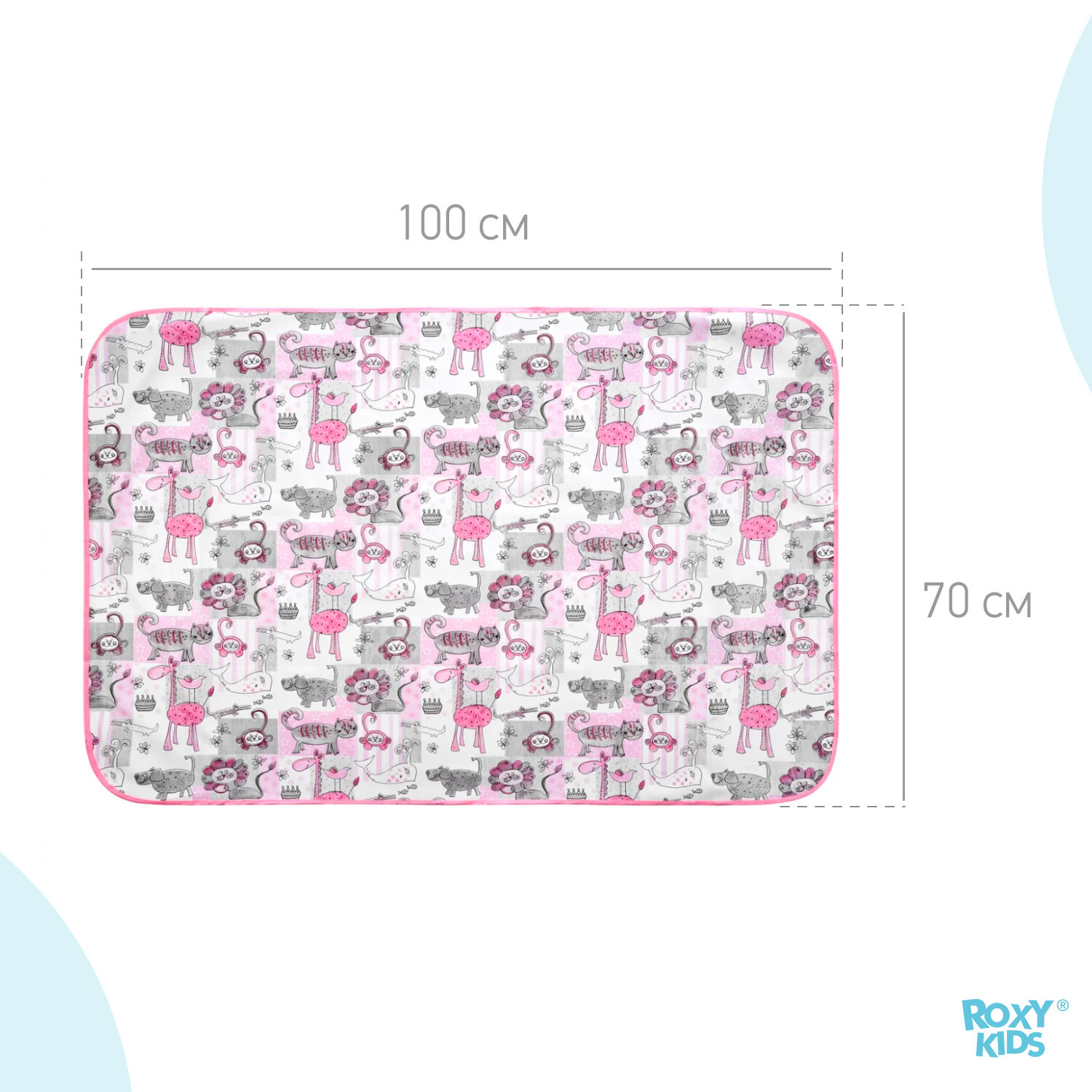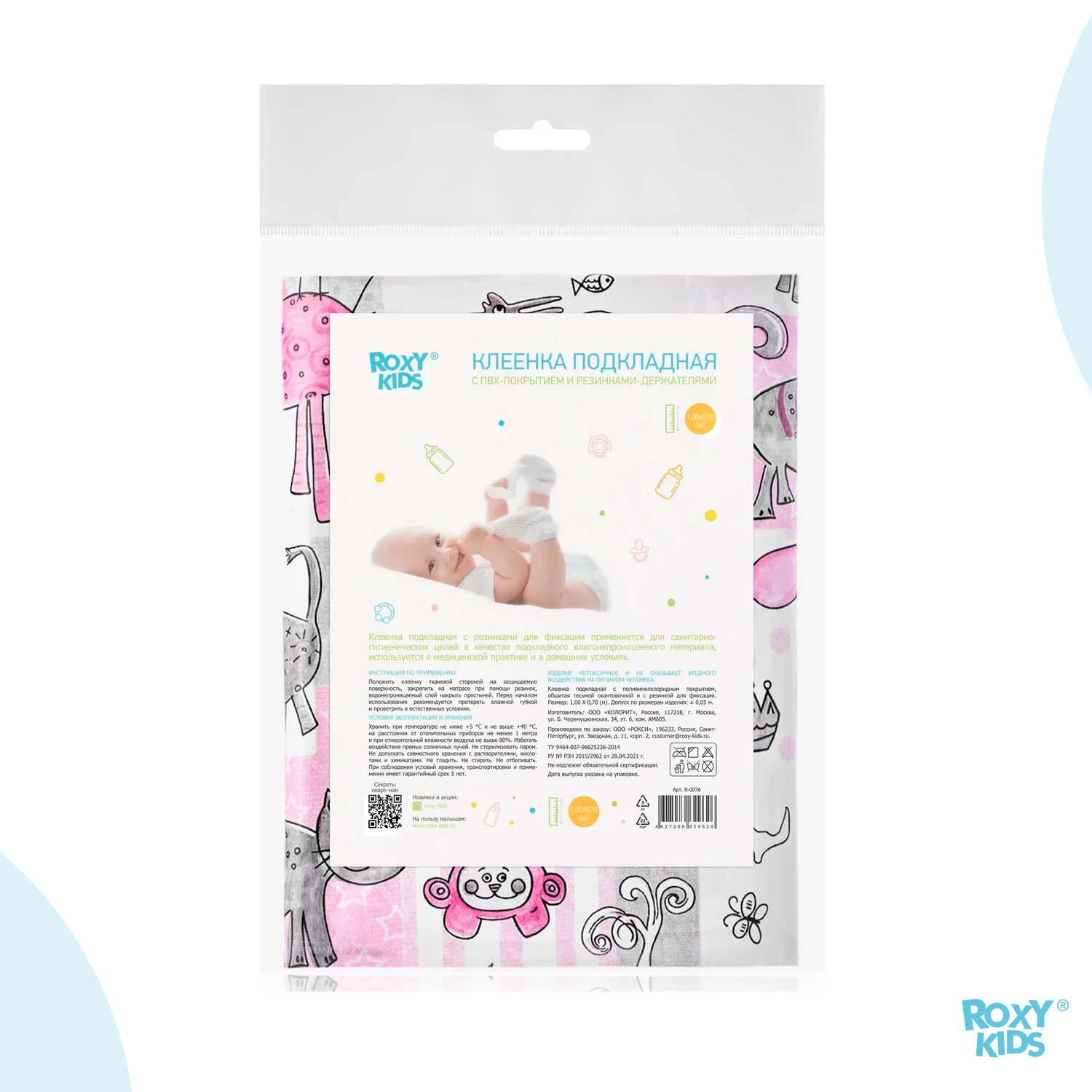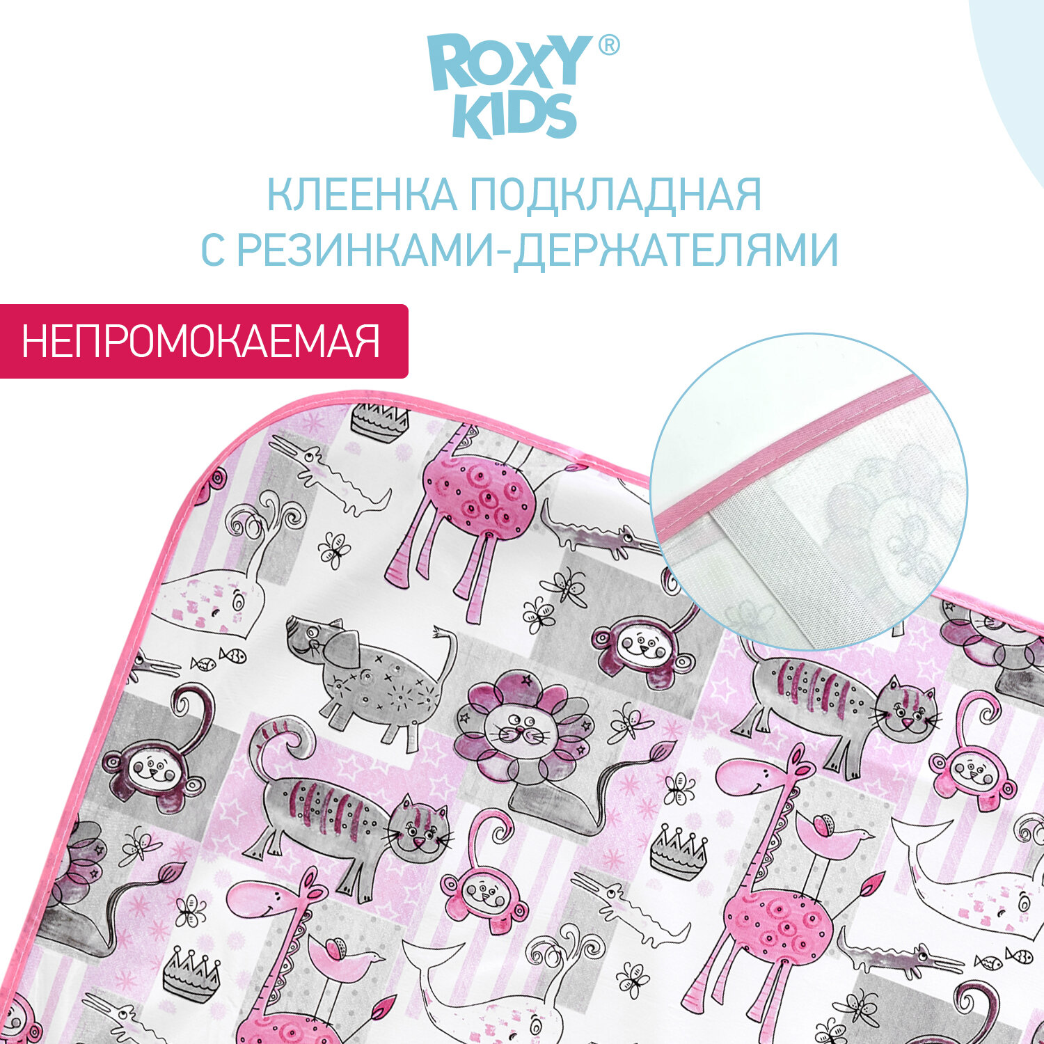 Клеёнка-наматрасник Roxy-Kids Zoo, с резинками-держателями, серо-розовый, ПВХ покрытие, 70*100 см