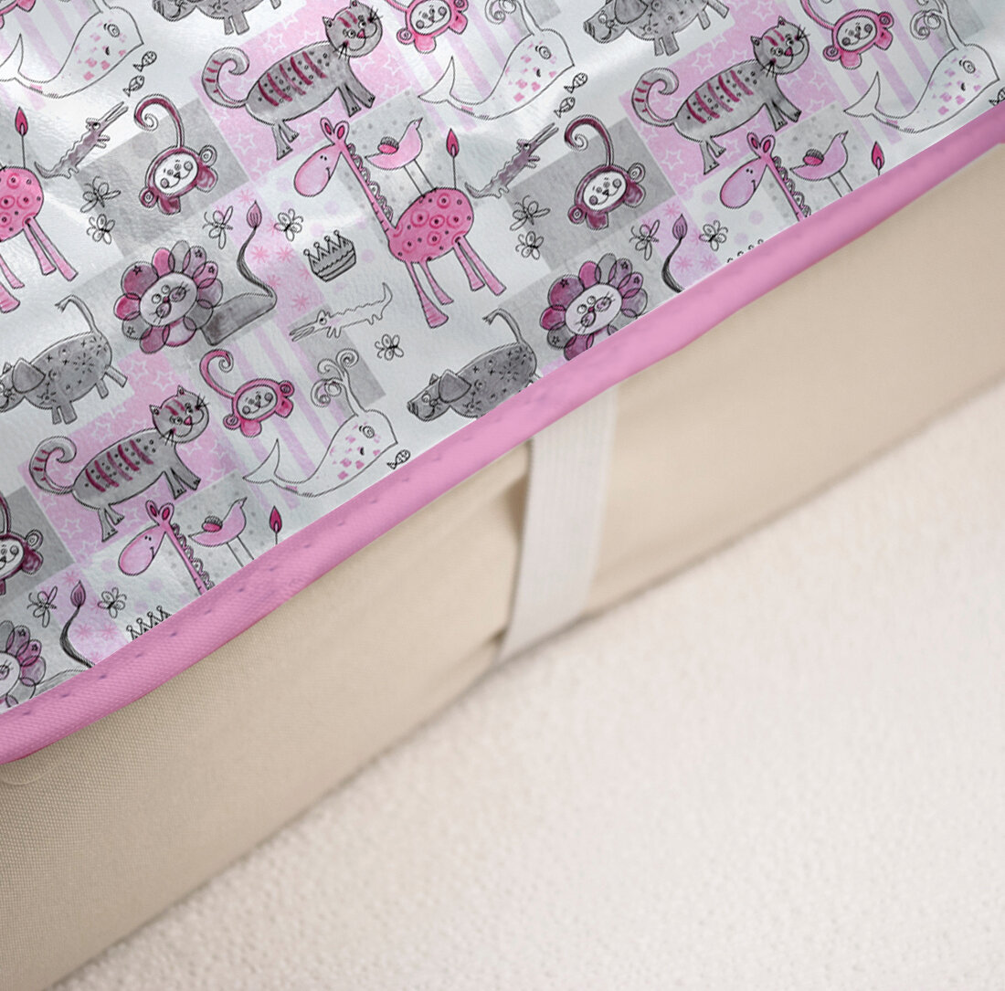 Клеёнка-наматрасник подкладная с резинками-держателями ZOO от ROXY-KIDS 70х100 см, цвет серо-розовый
