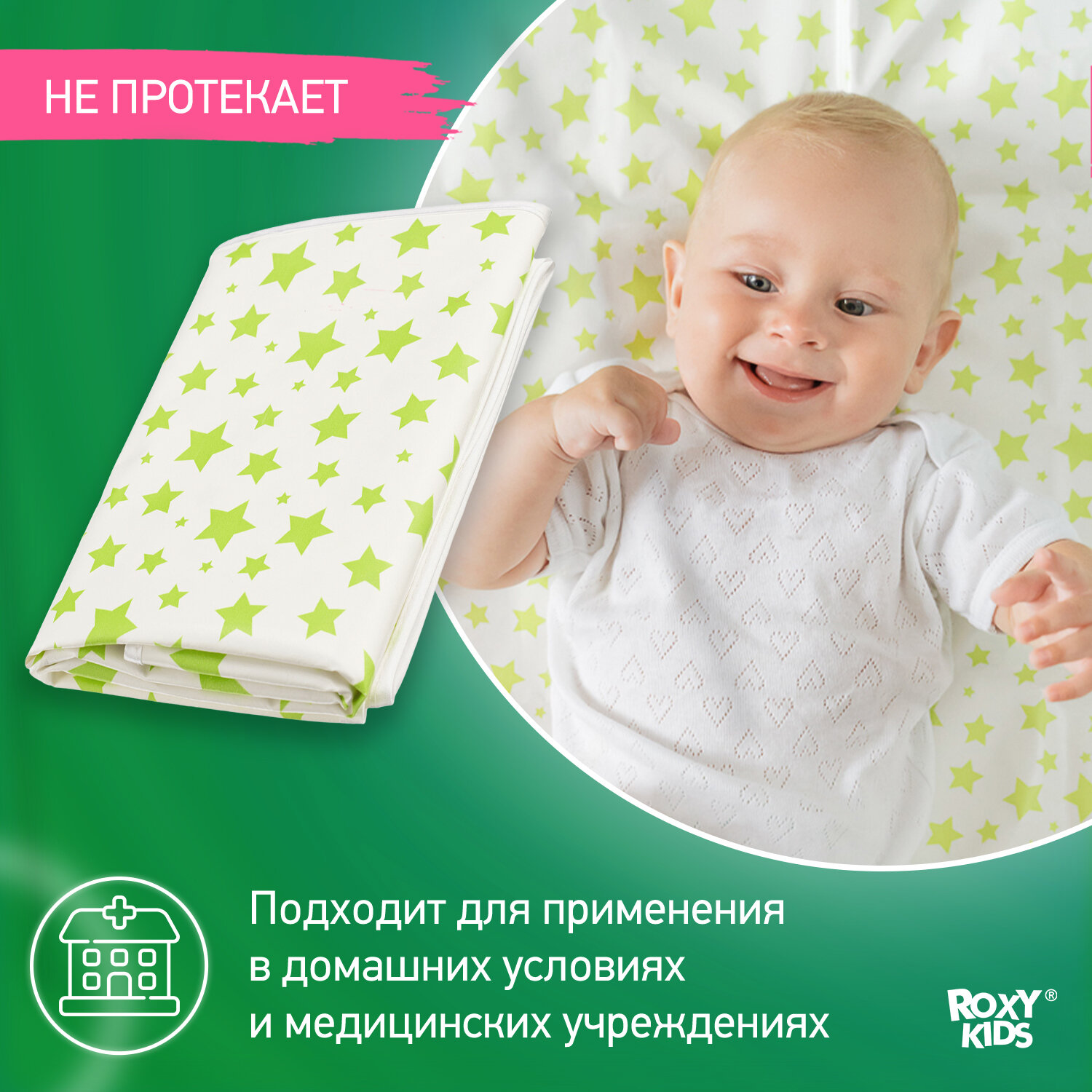 СохранитьКлеенка - наматрасник подкладная с ПВХ-покрытием ROXY-KIDS 68х100 см, цвет фисташковые звезды интересное:
