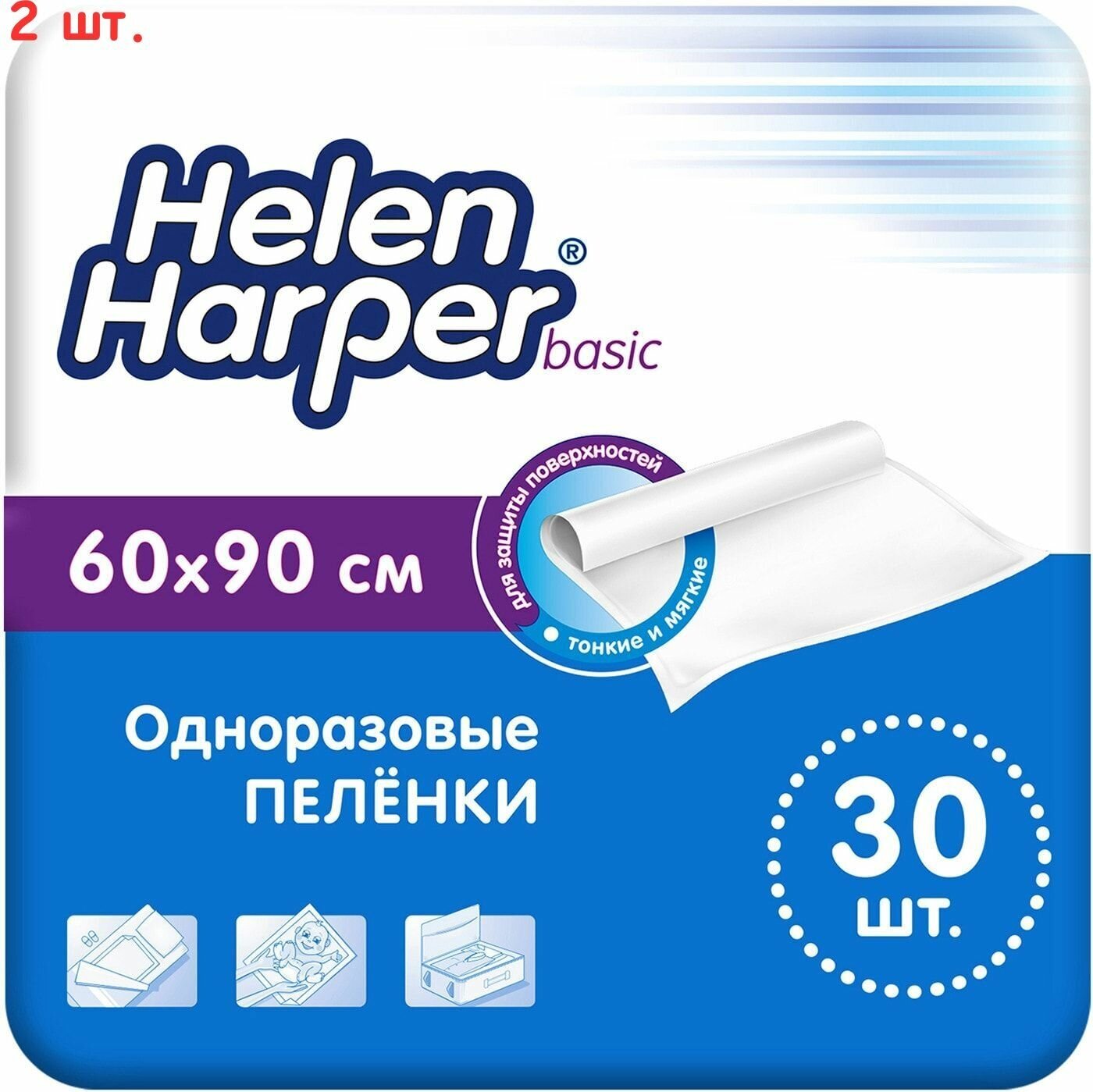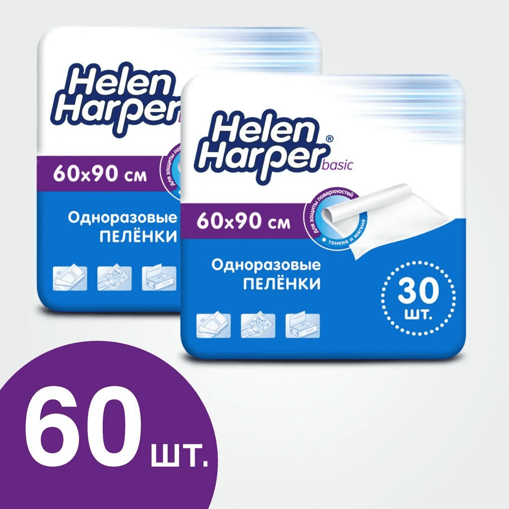 Одноразовые впитывающие пеленки 60х90 см 30 шт Helen Harper Basic, 2 уп интересное: