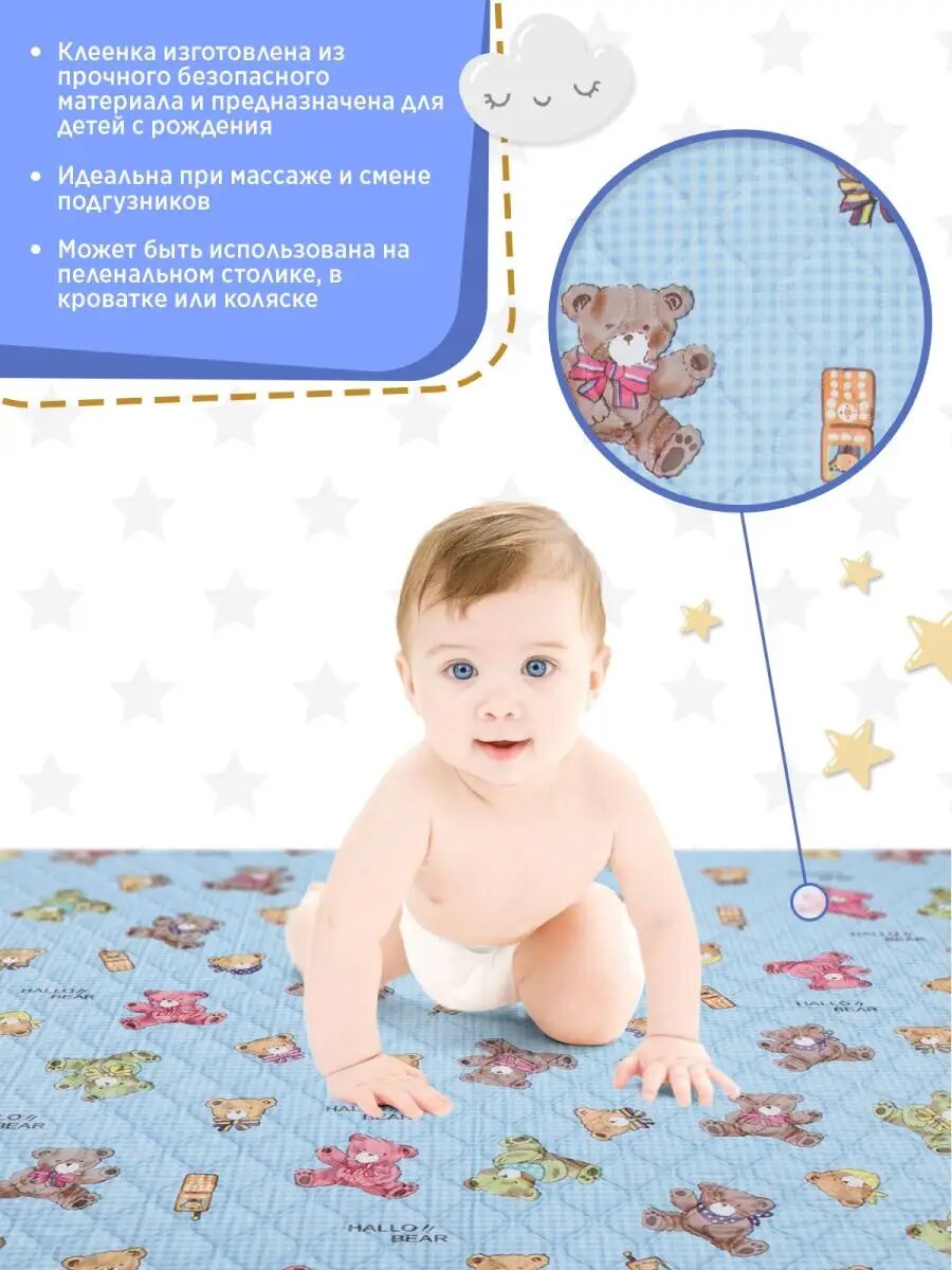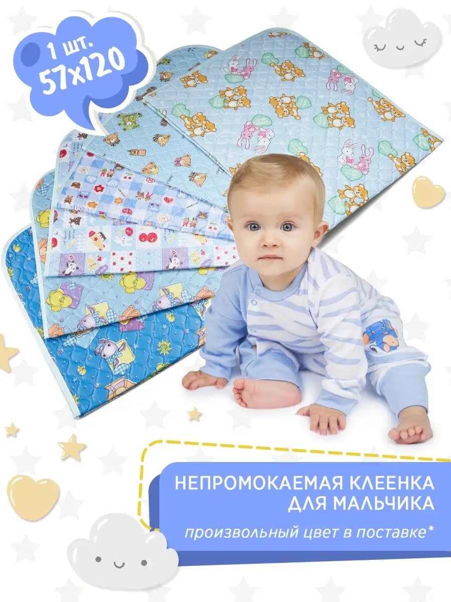 Клеенка детская непромокаемая многоразовая TOBBY синяя для мальчиков 57х120см интересное: