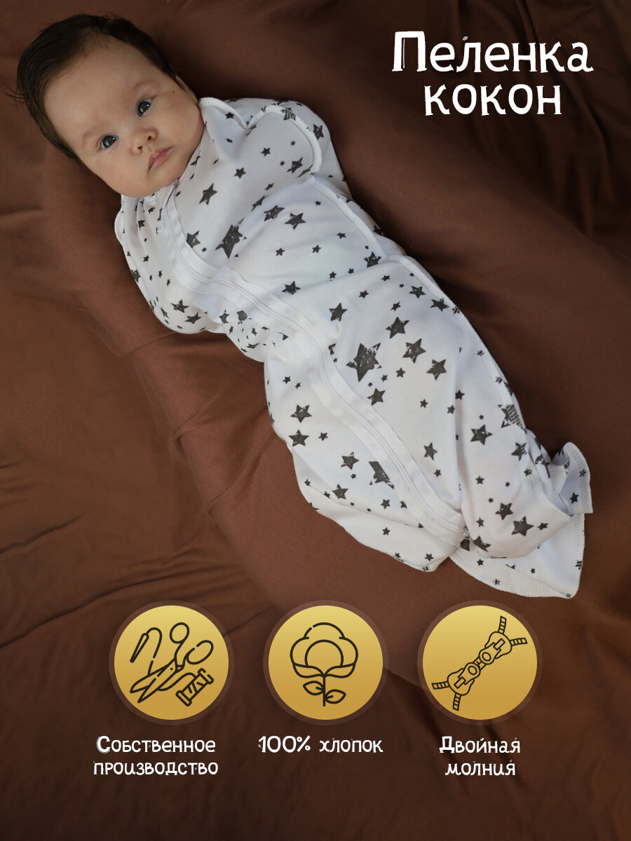 Пеленка кокон для новорожденного на выписку Детская многоразовая пеленка для малышей на молнии Звезды НГ