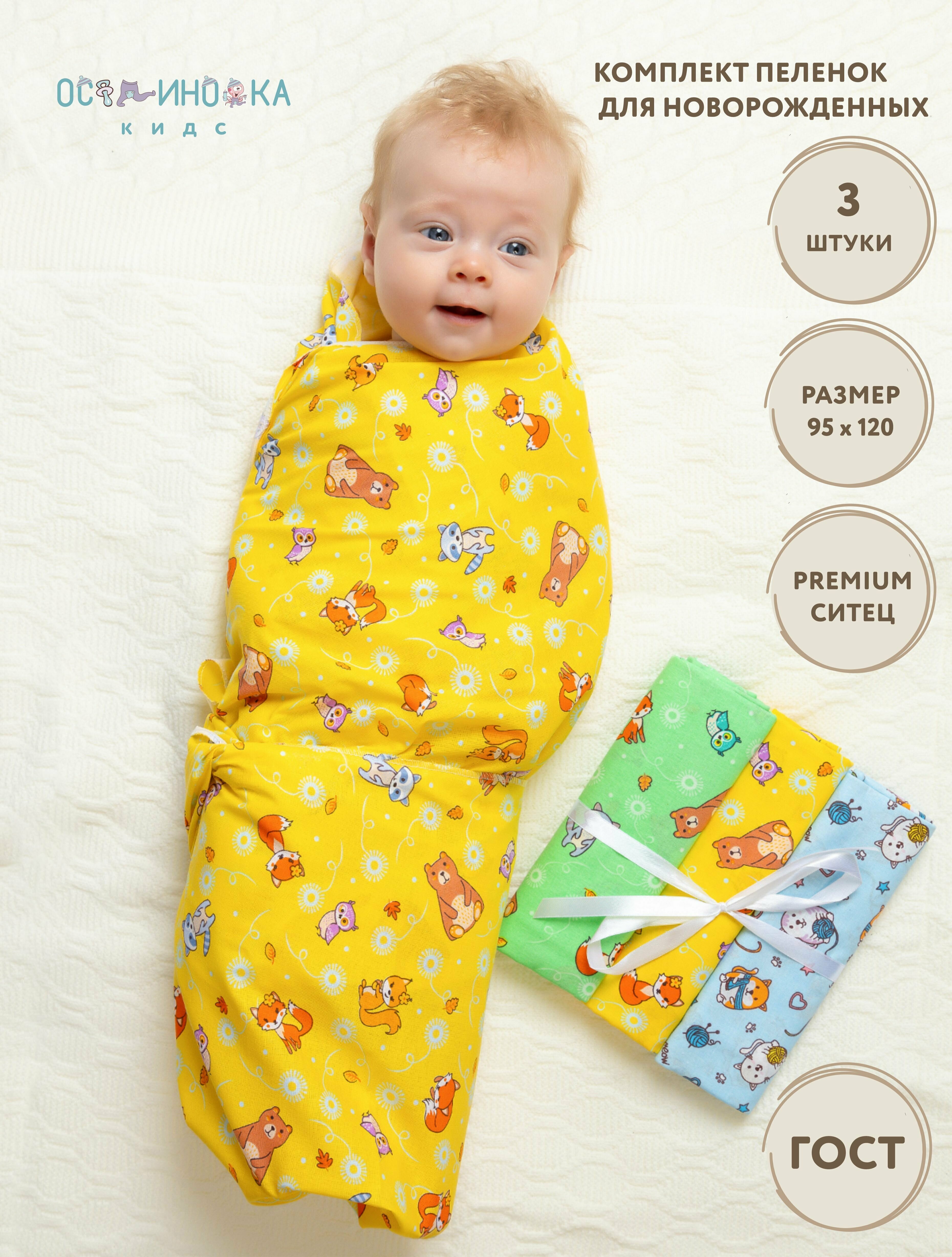 Пеленка для новорожденных ситец ГОСТ комплект 120*95 премиум (3шт в упаковке) интересное: