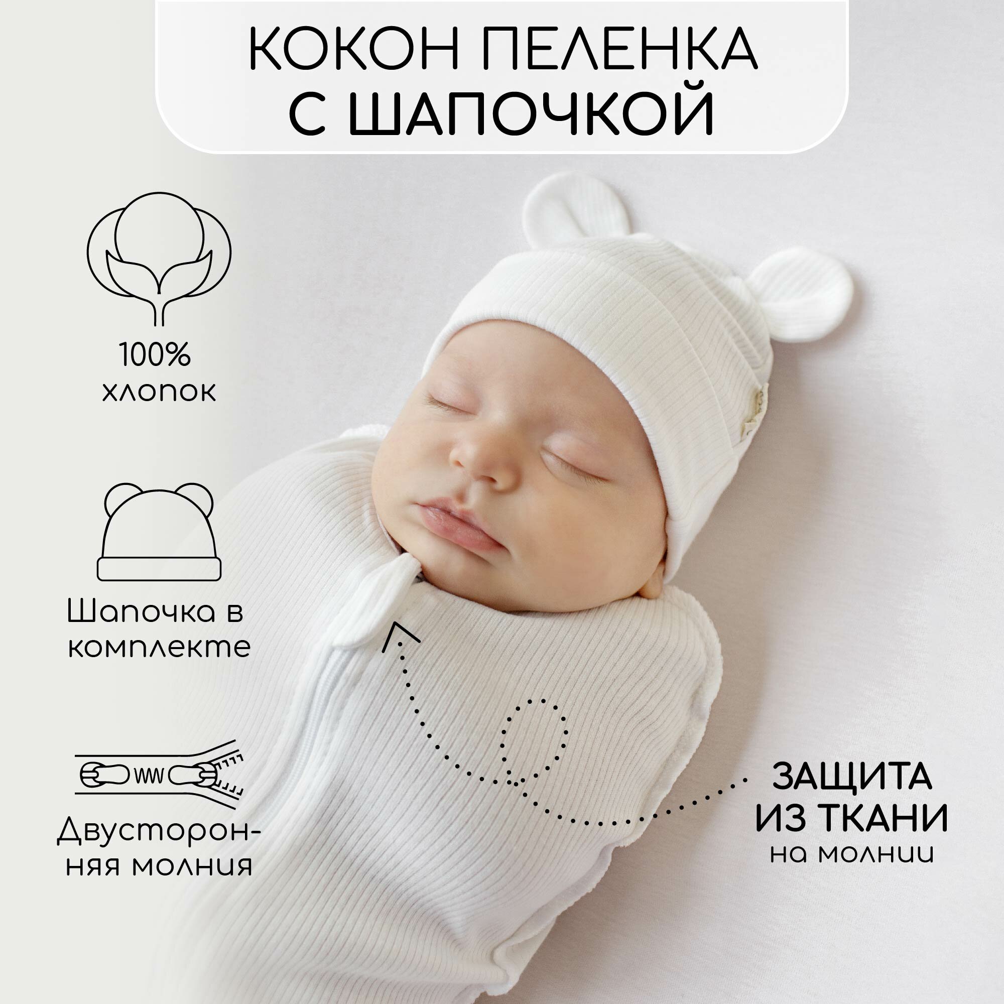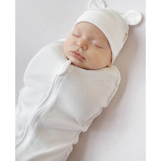 Пеленка-кокон на молнии с шапочкой Amarobaby Fashion, молочный, размер 56-68