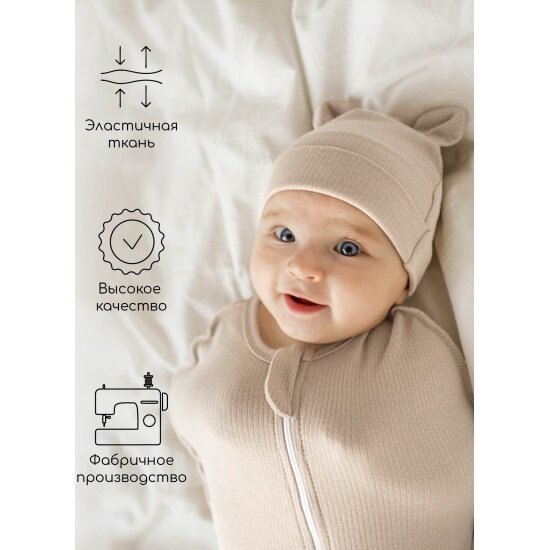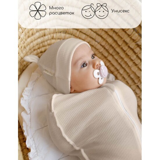 Пеленка-кокон на молнии с шапочкой Amarobaby Fashion, бежевый, размер 56-68