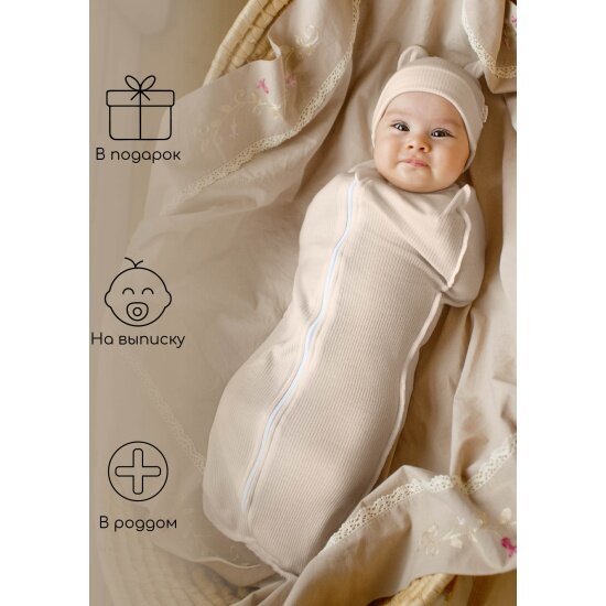 СохранитьПеленка-кокон на молнии с шапочкой Amarobaby Fashion, шампань, размер 68-74 интересное: