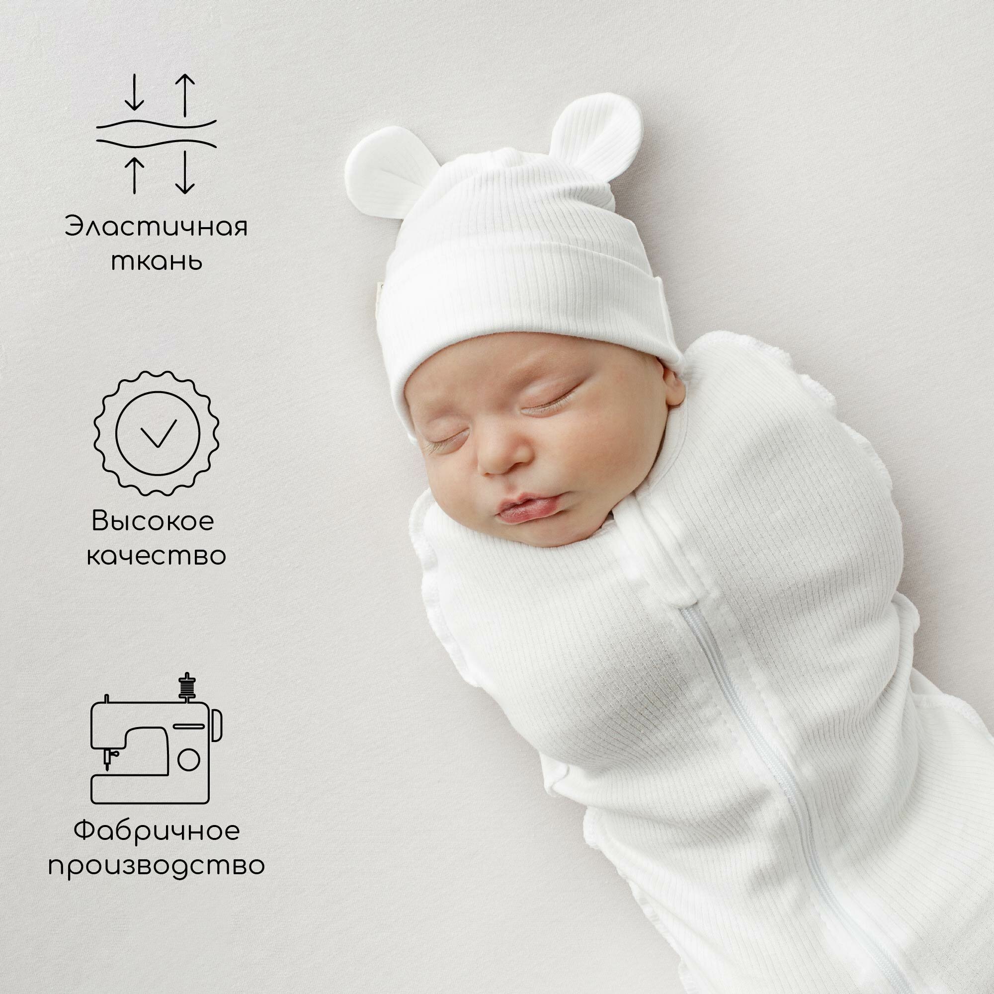Купить Пеленка-кокон на молнии с шапочкой Amarobaby Fashion, молочный, размер 56-68