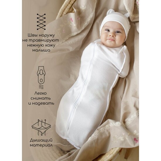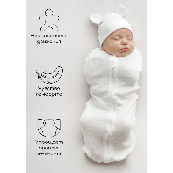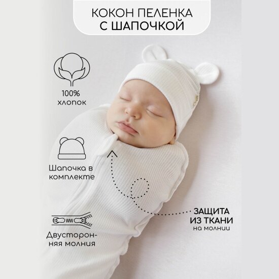 СохранитьПеленка-кокон на молнии с шапочкой Amarobaby Fashion, молочный, размер 56-68 интересное: