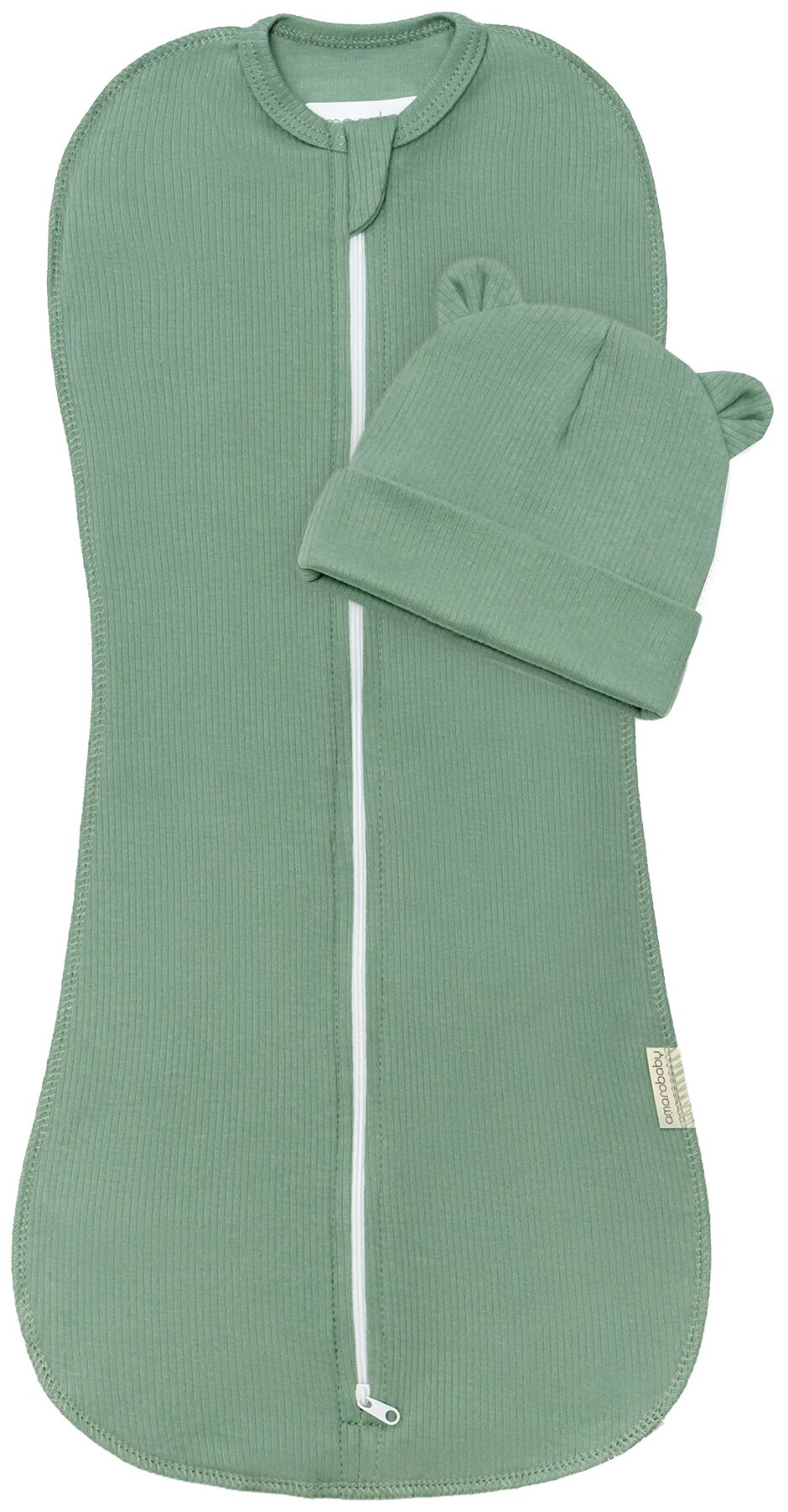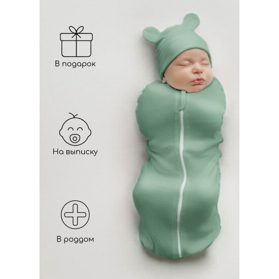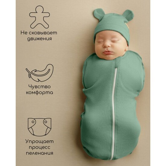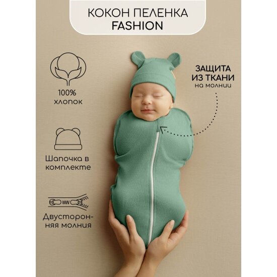 Пеленка-кокон на молнии с шапочкой Amarobaby Fashion, зеленый, размер 56-68