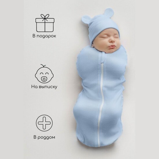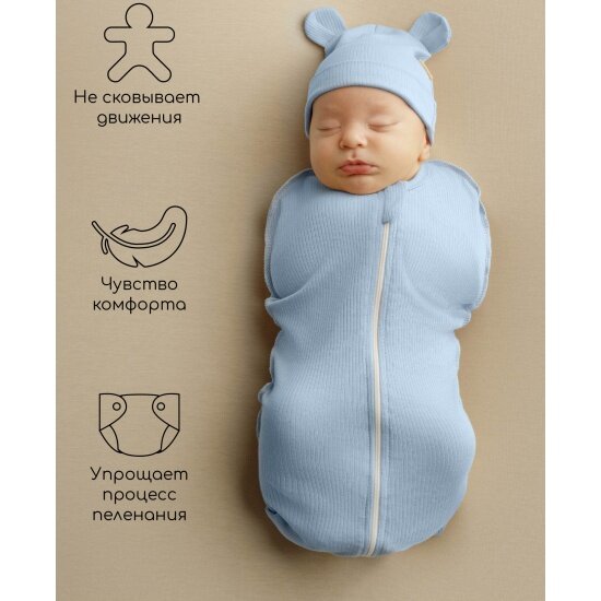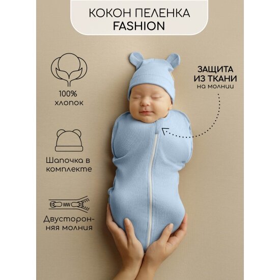 СохранитьПеленка-кокон на молнии с шапочкой Amarobaby Fashion, голубой, размер 56-68 интересное: