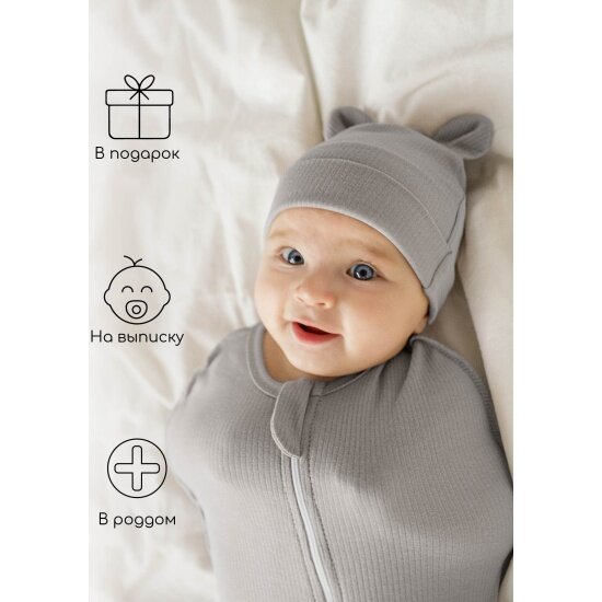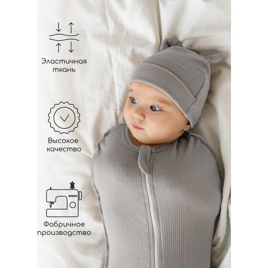 Пеленка-кокон на молнии с шапочкой Amarobaby Fashion, серый, размер 56-68