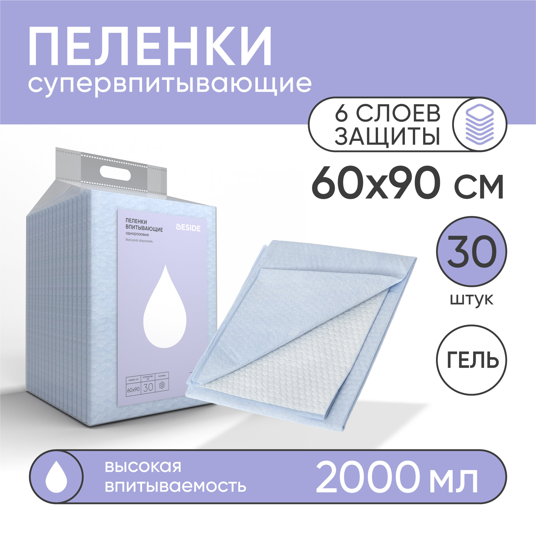 Купить Пеленки одноразовые впитывающие BESIDE 60х90 см 30 шт непромокаемые гелевые простыни для взрослых, детей и домашних животных