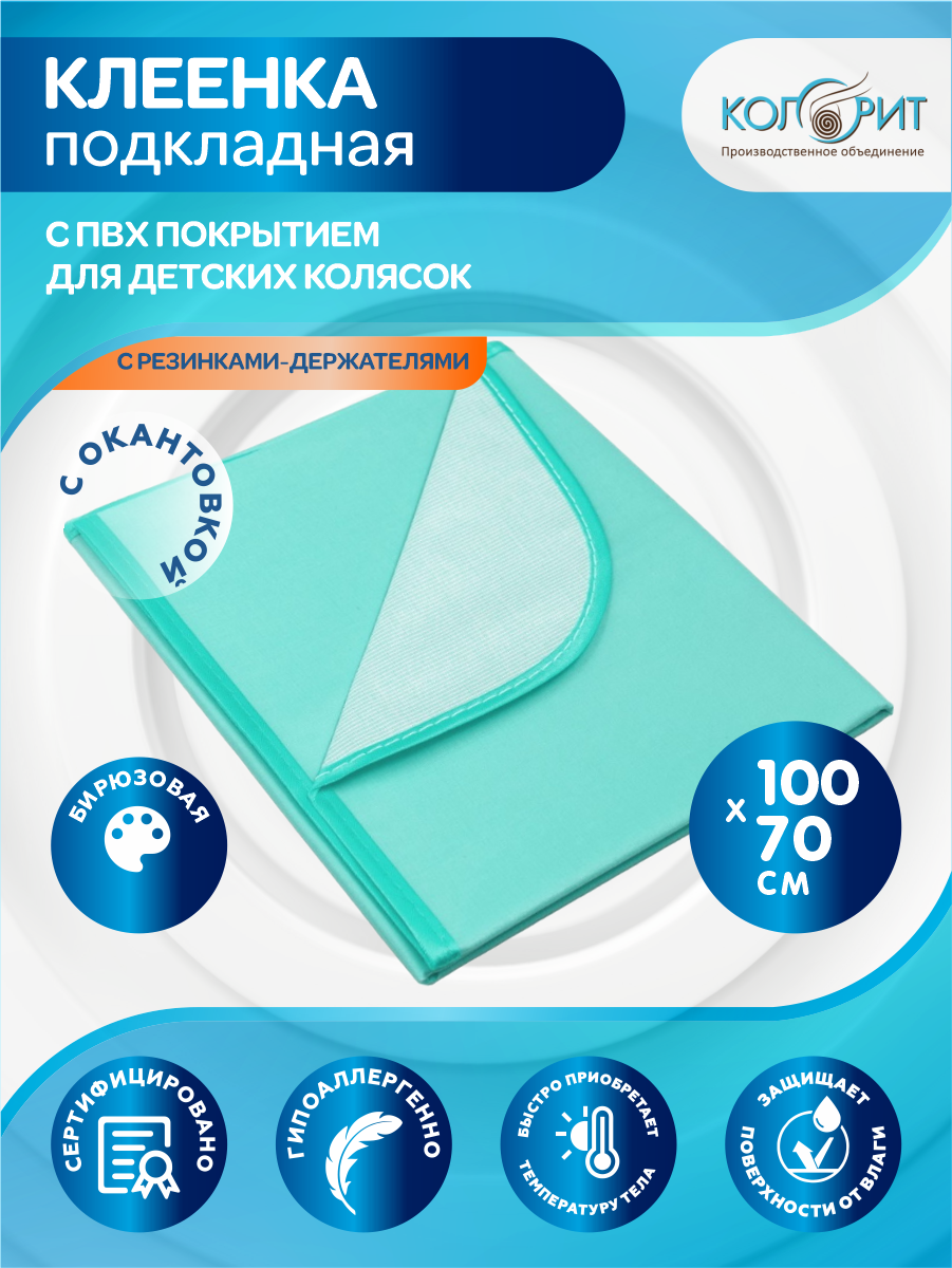 Клеёнка подкладная Колорит для детских колясок с резинками-держателями и окантовкой 1x0,7м бирюзовая интересное: