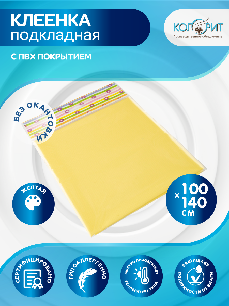 Клеенка подкладная с ПВХ покрытием Колорит без окантовки 1,0 х 1,4 м. желтая интересное: