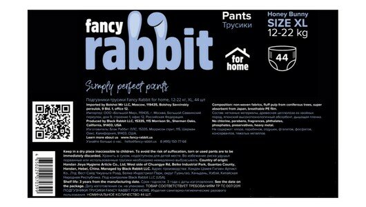 Fancy Rabbit трусики for home XL, 12-22 кг, 44 шт., , белый интересное: